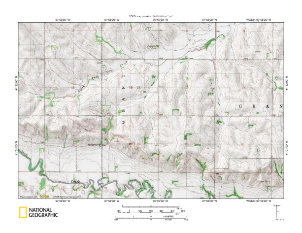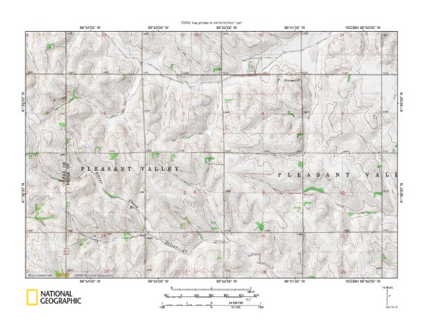 Figure 9: Elkhorn River-Maple Creek drainage divide area. United States Geological Survey map digitally presented using National Geographic Society TOPO software.