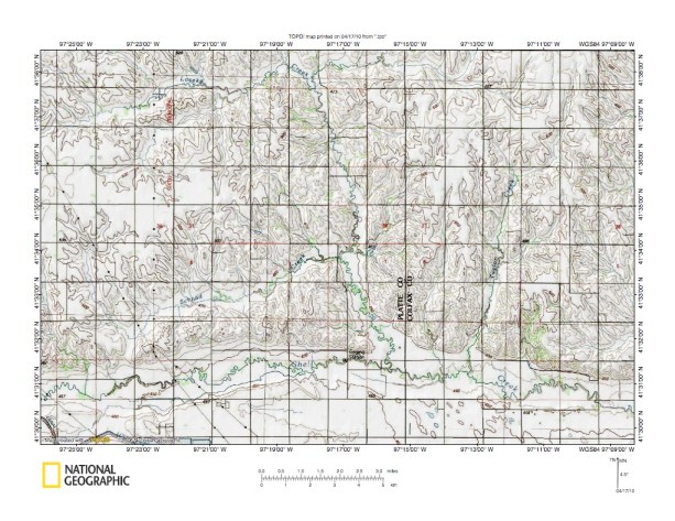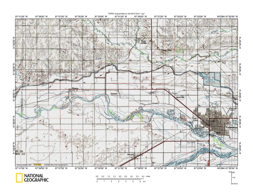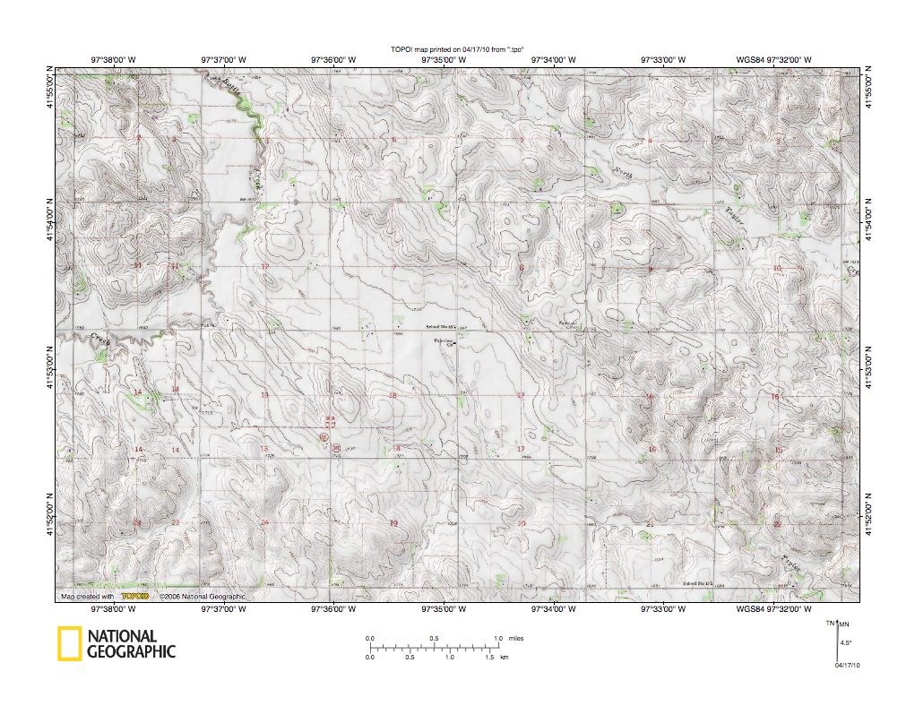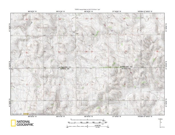 Figure 10: Shell Creek-Loup River drainage divide area. United States Geological Survey map digitally presented using National Geographic Society TOPO software.
