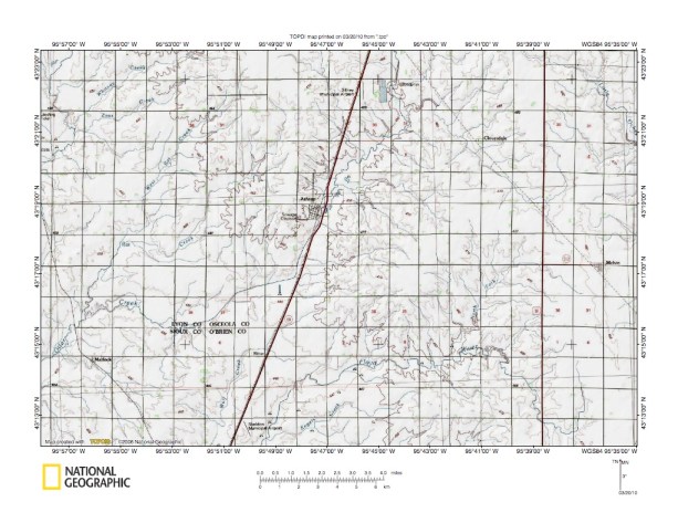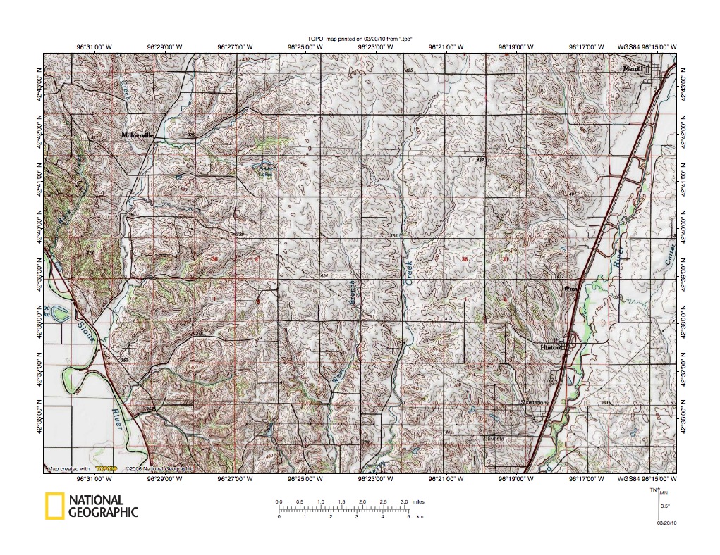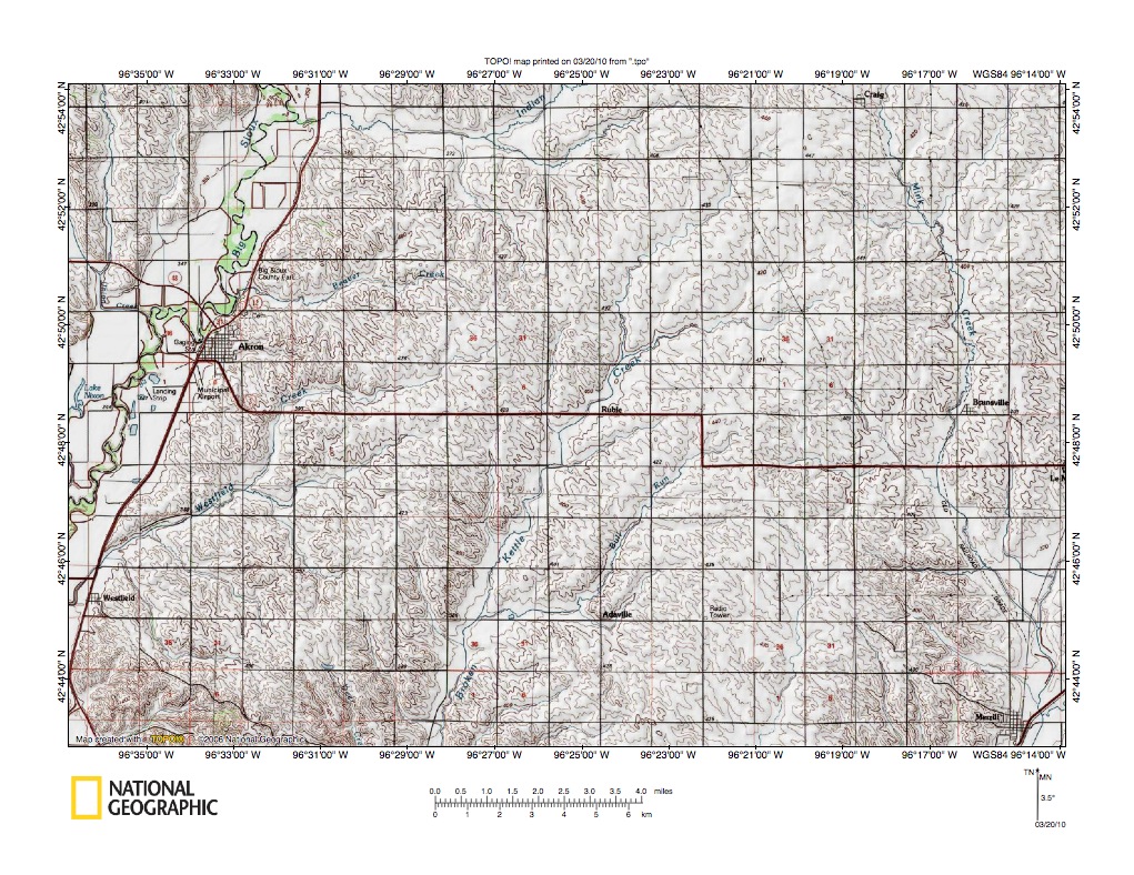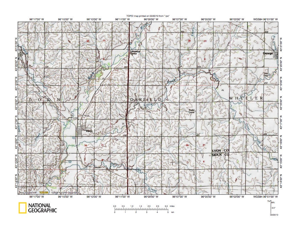 Figure 5: Little Rock River near Doon, Iowa. United States Geological Survey map digitally presented using National Geographic Society TOPO software.