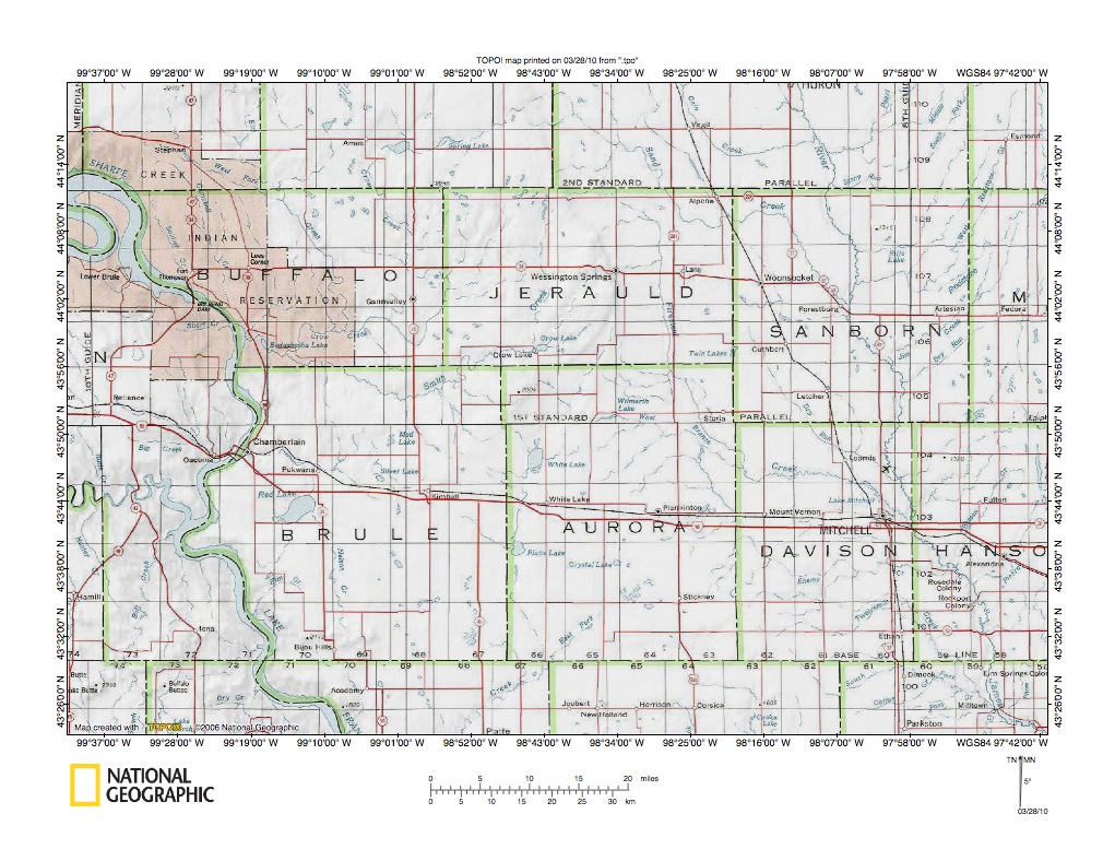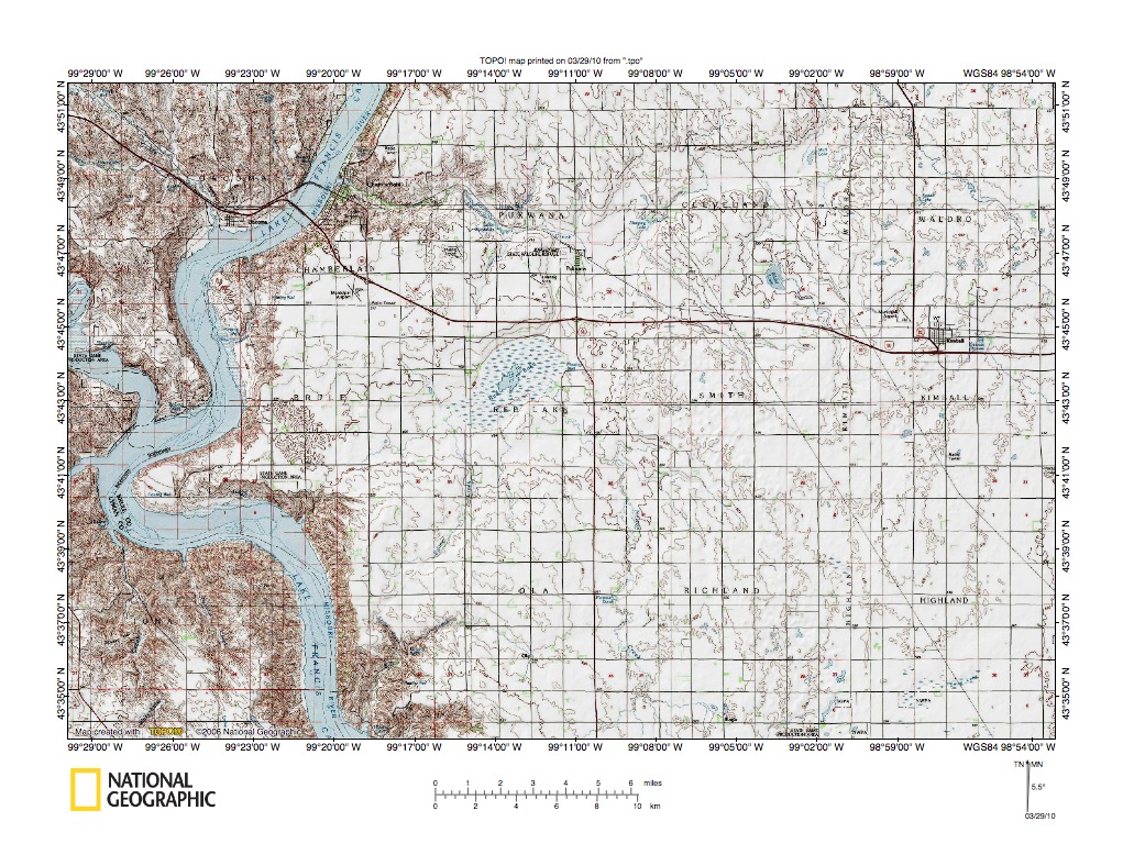 Figure 8: Red Lake area near Chamberlain, South Dakota. United States Geological Survey map digitally presented using National Geographic Society TOPO software.