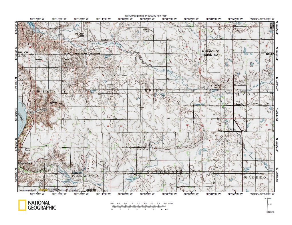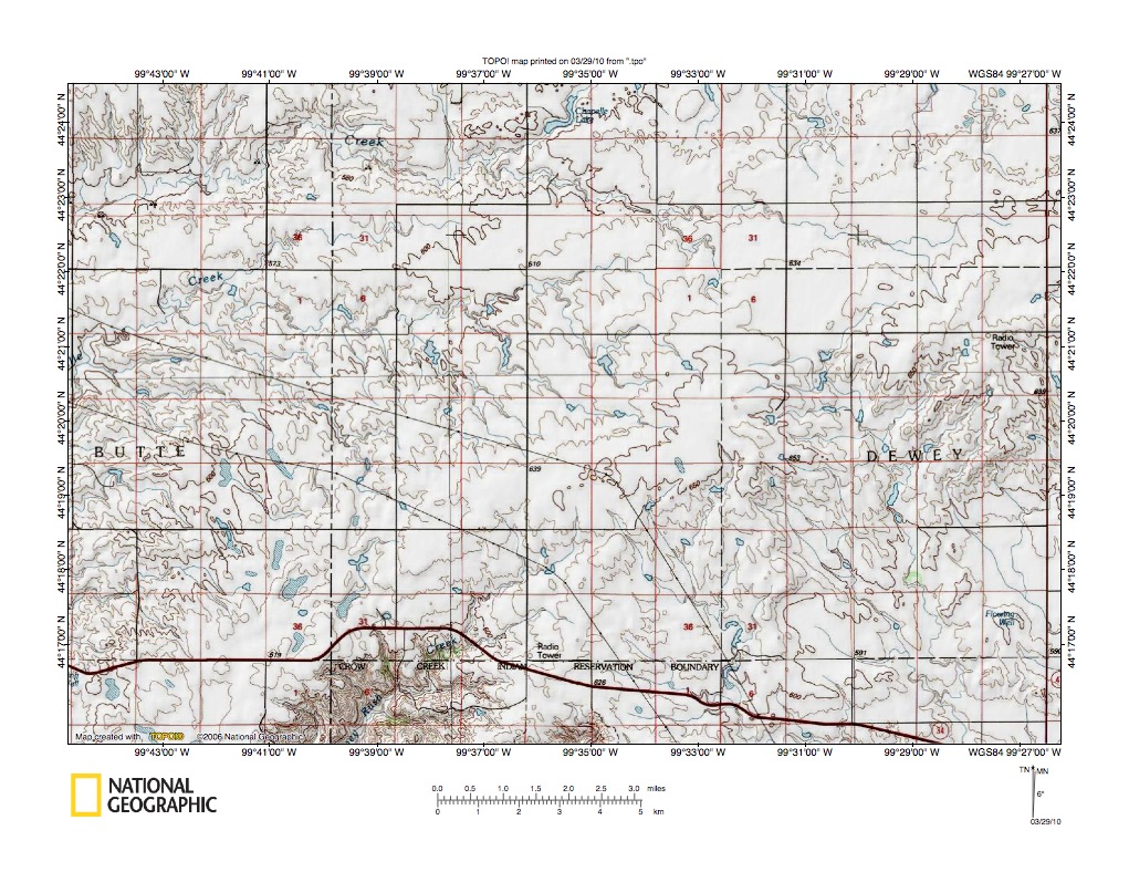 Figure 6: Crow Creek valley near Big Bend Dam. United States Geological Survey map digitally presented using National Geographic Society TOPO software.
