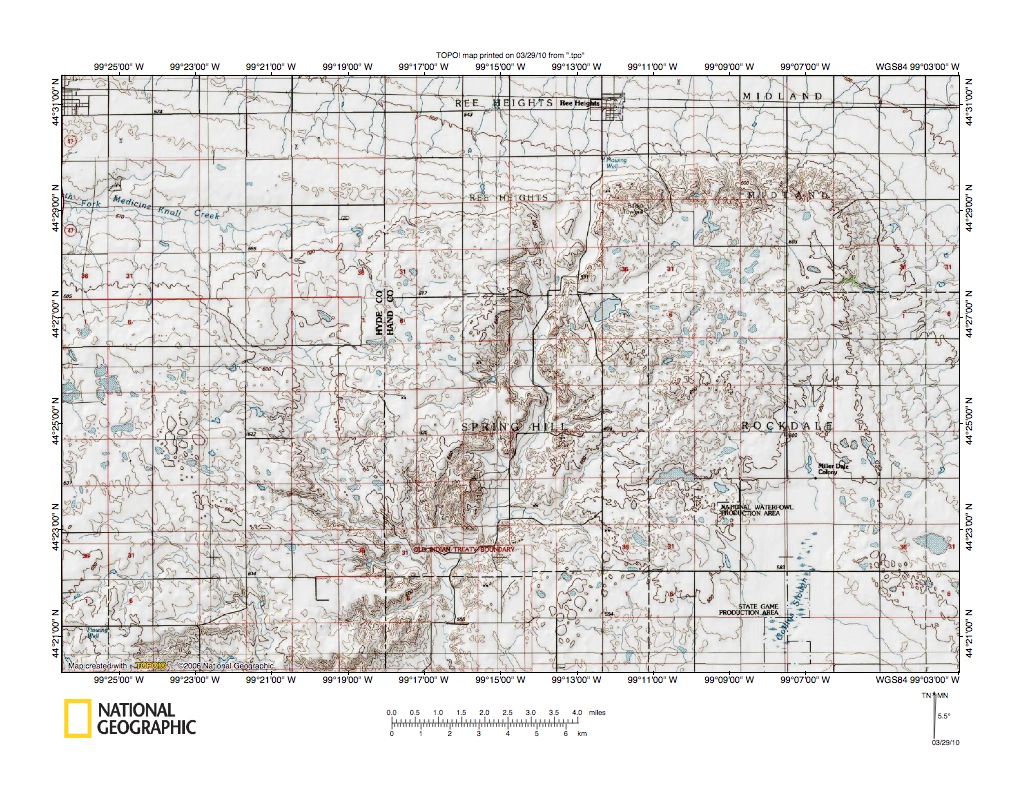 Figure 7: Smith Creek valley area southeast of Big Bend Dam. United States Geological Survey map digitally presented using National Geographic Society TOPO software.