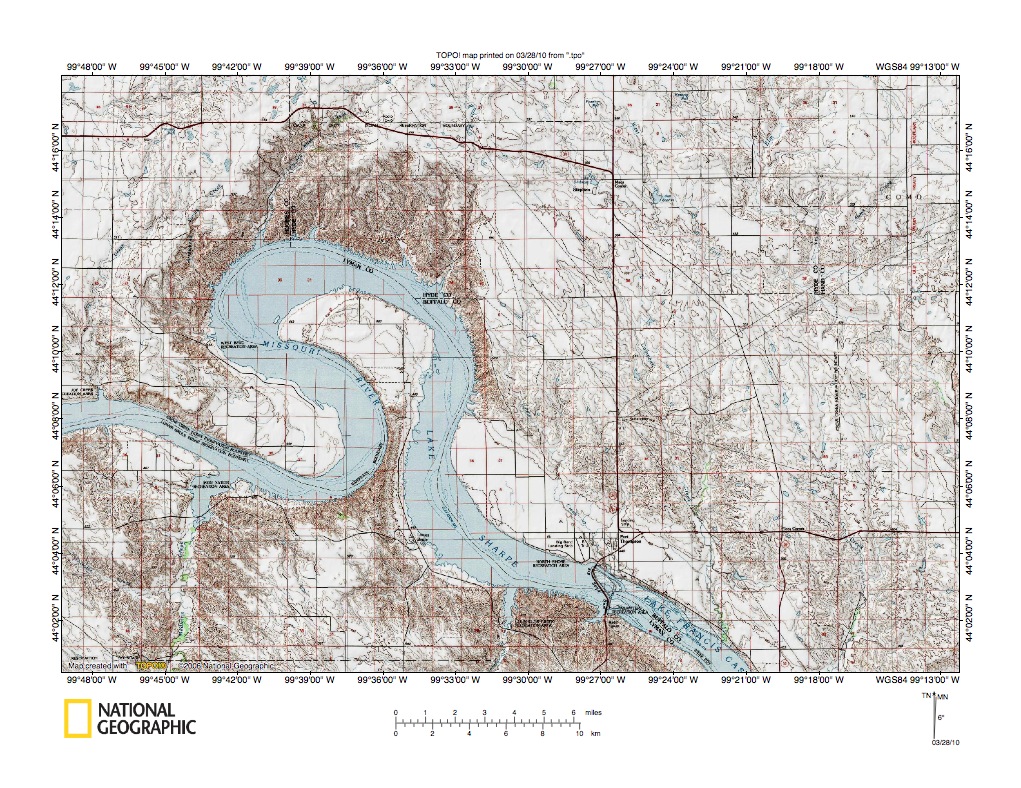 Figure 3: Missouri River valley near Big Bend Dam. United States Geological Survey map digitally presented using National Geographic Society TOPO software.