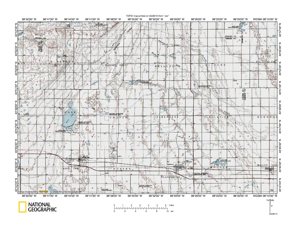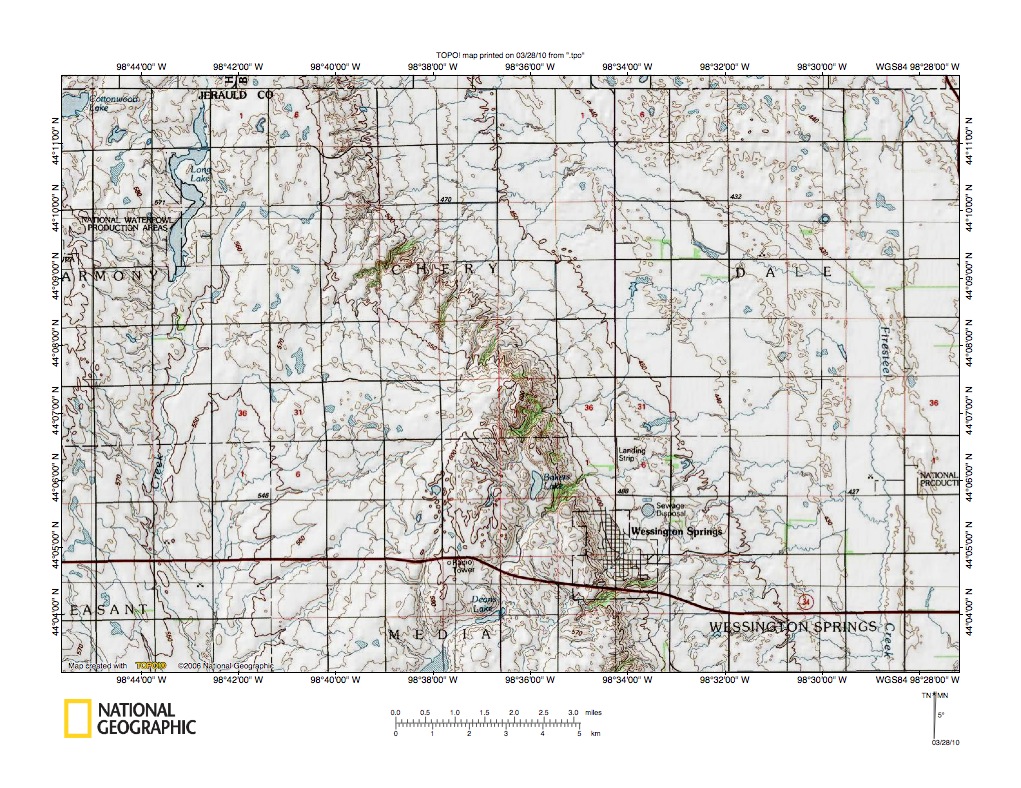Figure 9: Missouri Escarpment near Wessington Springs, South Dakota. United States Geological Survey map digitally presented using National Geographic Society TOPO software.