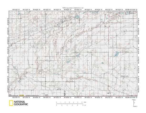 Figure 7: Missouri Coteau south of South Fork Medicine Knoll Creek. United States Geological Survey map digitally presented using National Geographic Society TOPO software.