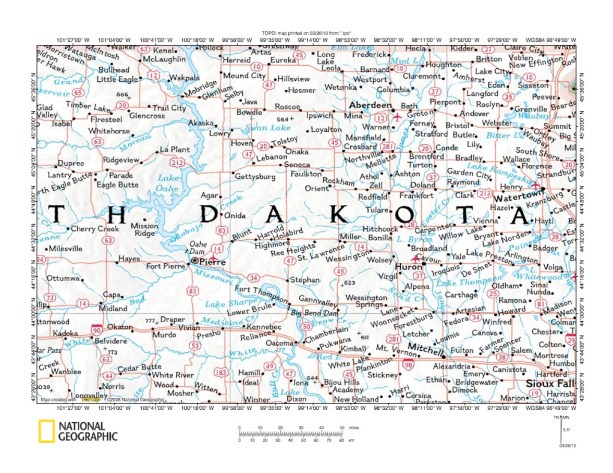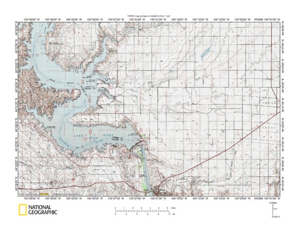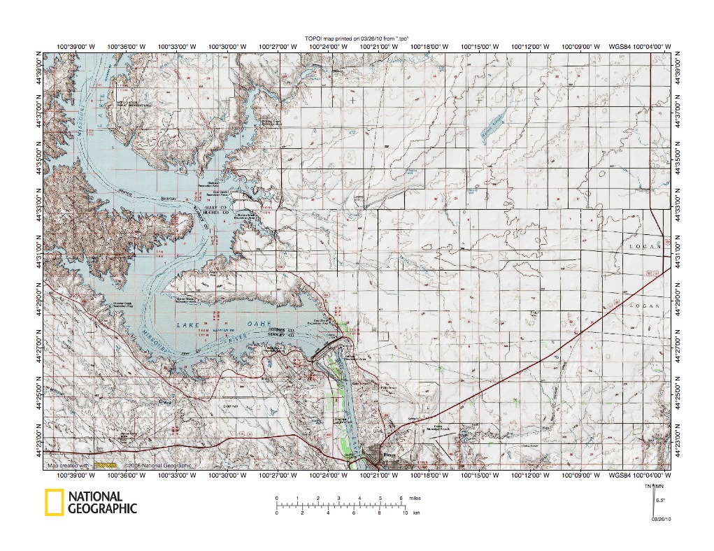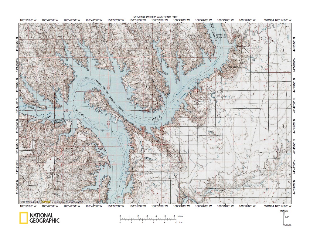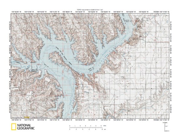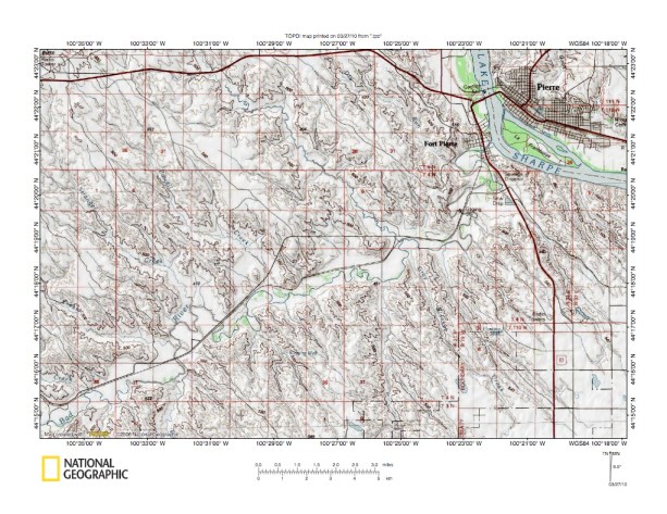 Figure 4: Missouri River valley north of Pierre, South Dakota. United States Geological Survey map digitally presented using National Geographic Society TOPO software.