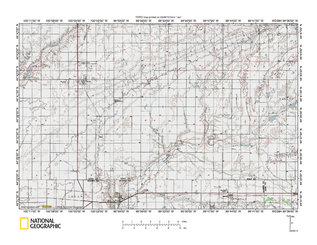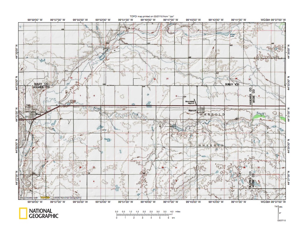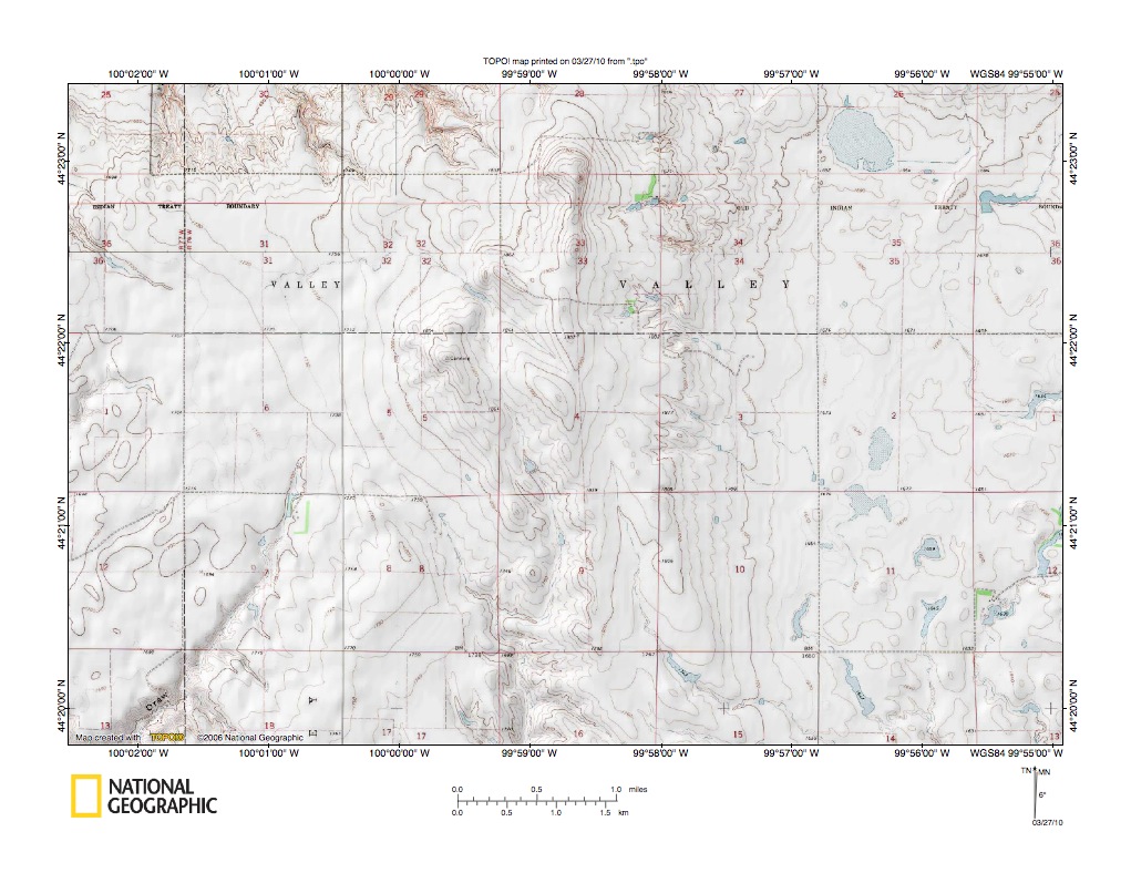 Figure 6: Medicine Knoll Creek valley northeast of Blunt, South Dakota. United States Geological Survey map digitally presented using National Geographic Society TOPO software.