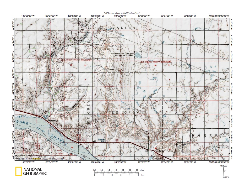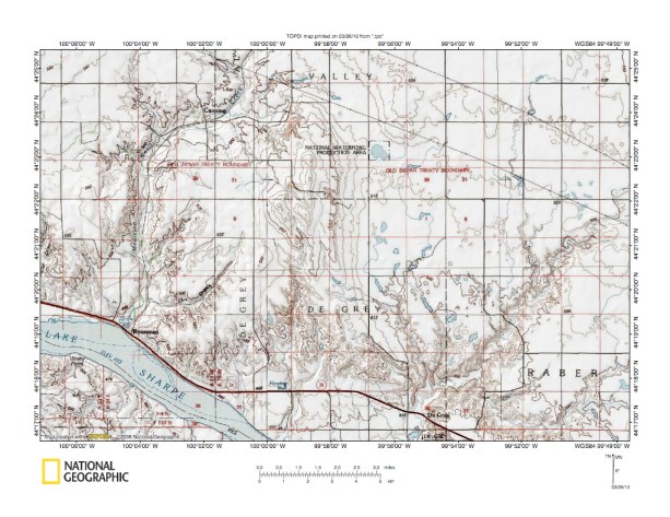 Figure 3: Missouri River valley near Cheyenne River mouth. United States Geological Survey map digitally presented using National Geographic Society TOPO software.