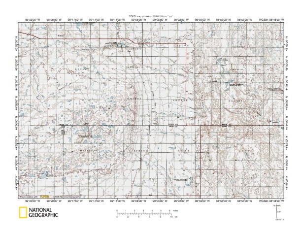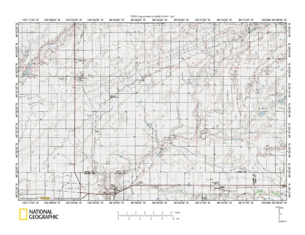 Figure 8: Missouri Coteau remnant southwest of Faulkton, South Dakota. United States Geological Survey map digitally presented using National Geographic Society TOPO software.