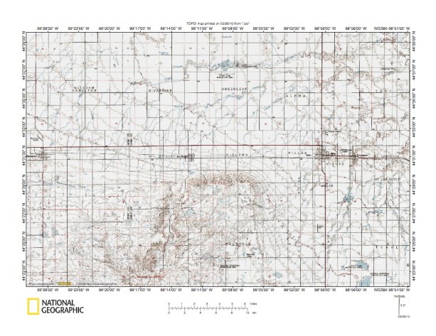 Figure 9: Missouri Coteau remnant southwest of Miller, South Dakota. United States Geological Survey map digitally presented using National Geographic Society TOPO software.