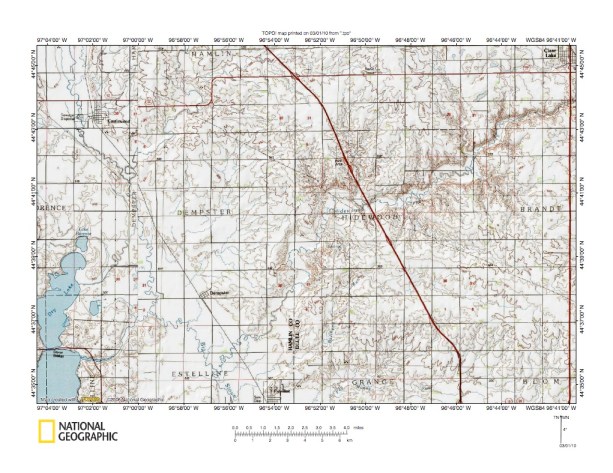 Figure 10: Hidewood Creek valley southwest of Clear Lake, South Dakota. United States Geological Survey map digitally presented using National Geographic Society TOPO software.