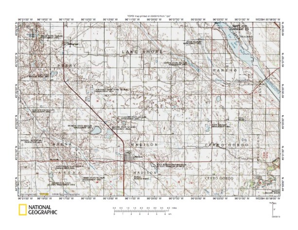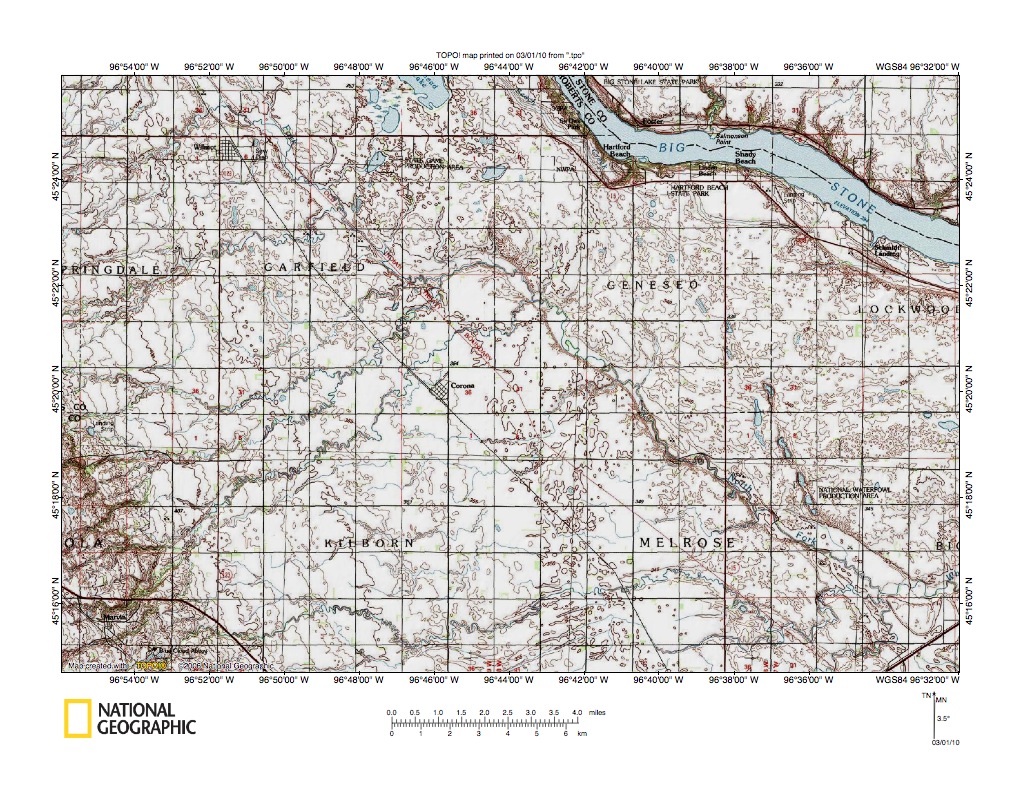 Figure 4: Prairie Coteau-Big Stone Lake area east of Summit, South Dakota. United States Geological Survey map digitally presented using National Geographic Society TOPO software.