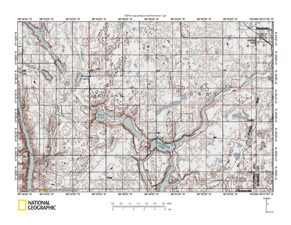 Figure 3: James River-Baldhill Creek drainage divide area. United States Geological Survey map digitally presented using National Geographic Society TOPO software.