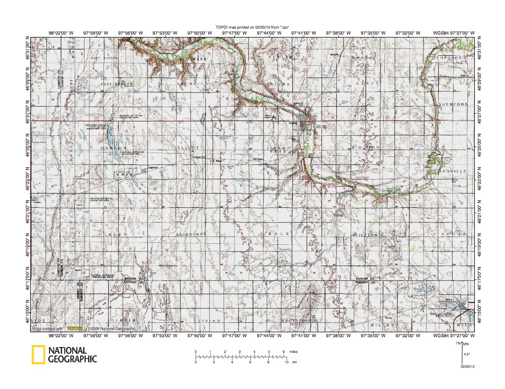 Figure 5: James River-Wild Rice River southeast of Oakes. United States Geological Survey map digitally presented using National Geographic Society TOPO software.