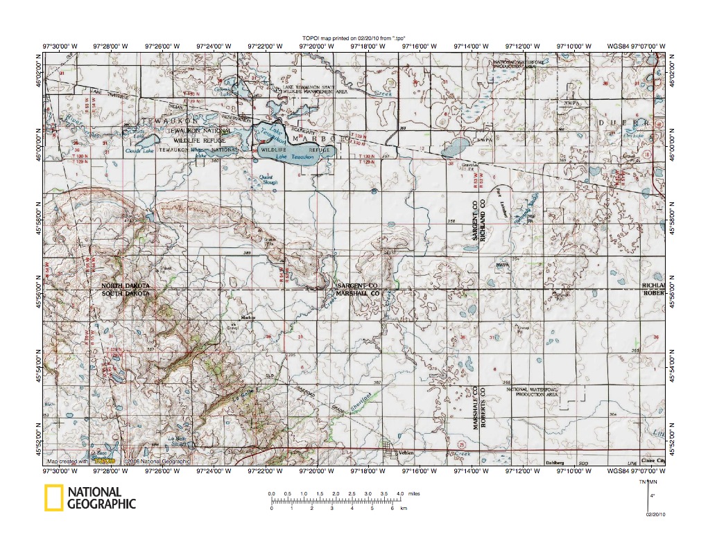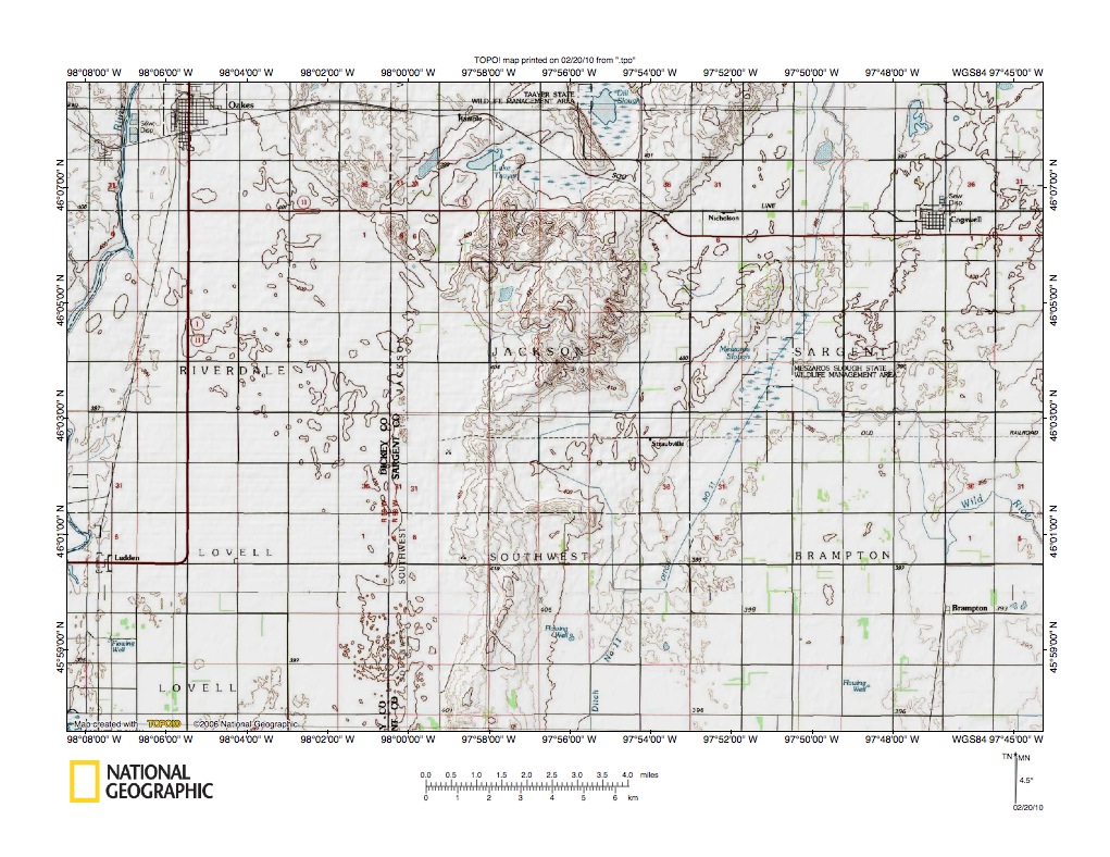 Figure 7: Wild Rice River drainage northeast of Prairie Coteau north end. United States Geological Survey map digitally presented using National Geographic Society TOPO software.