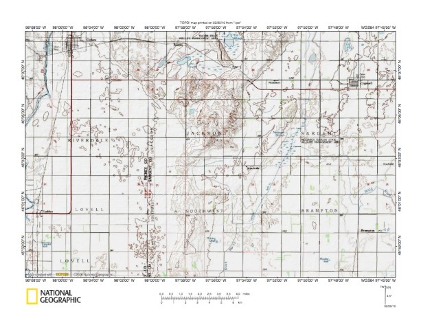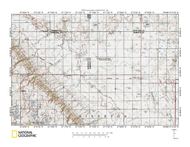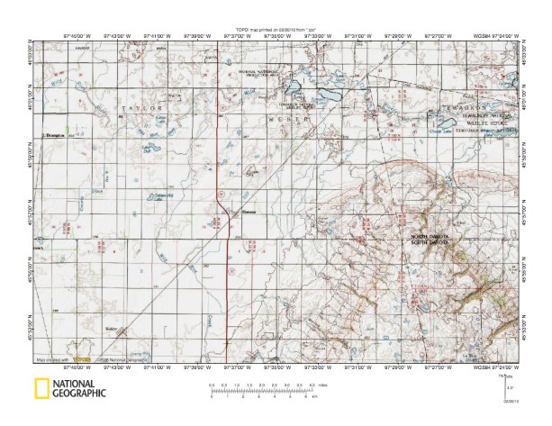 Figure 10: James River-Wild Rice River drainage divide area west of Prairie Coteau. United States Geological Survey map digitally presented using National Geographic Society TOPO software.