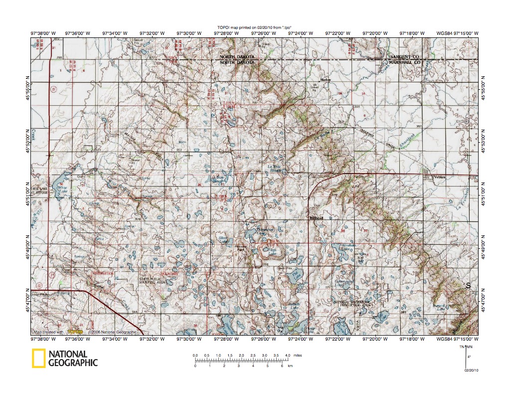 Figure 9: Wild Rice River headwaters on Prairie Coteau upper surface. United States Geological Survey map digitally presented using National Geographic Society TOPO software.