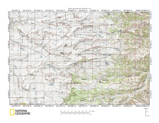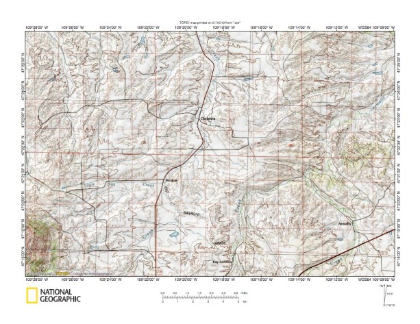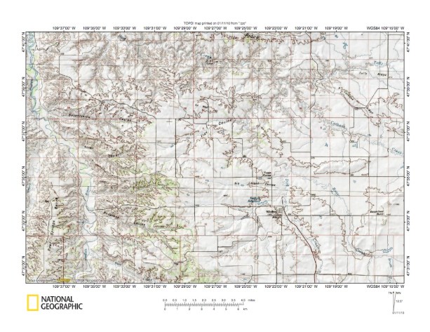 Figure 2: Judith River-Armells Creek drainage divide area detailed location map. United States Geological Survey map digitally presented using National Geographic Society TOPO software.