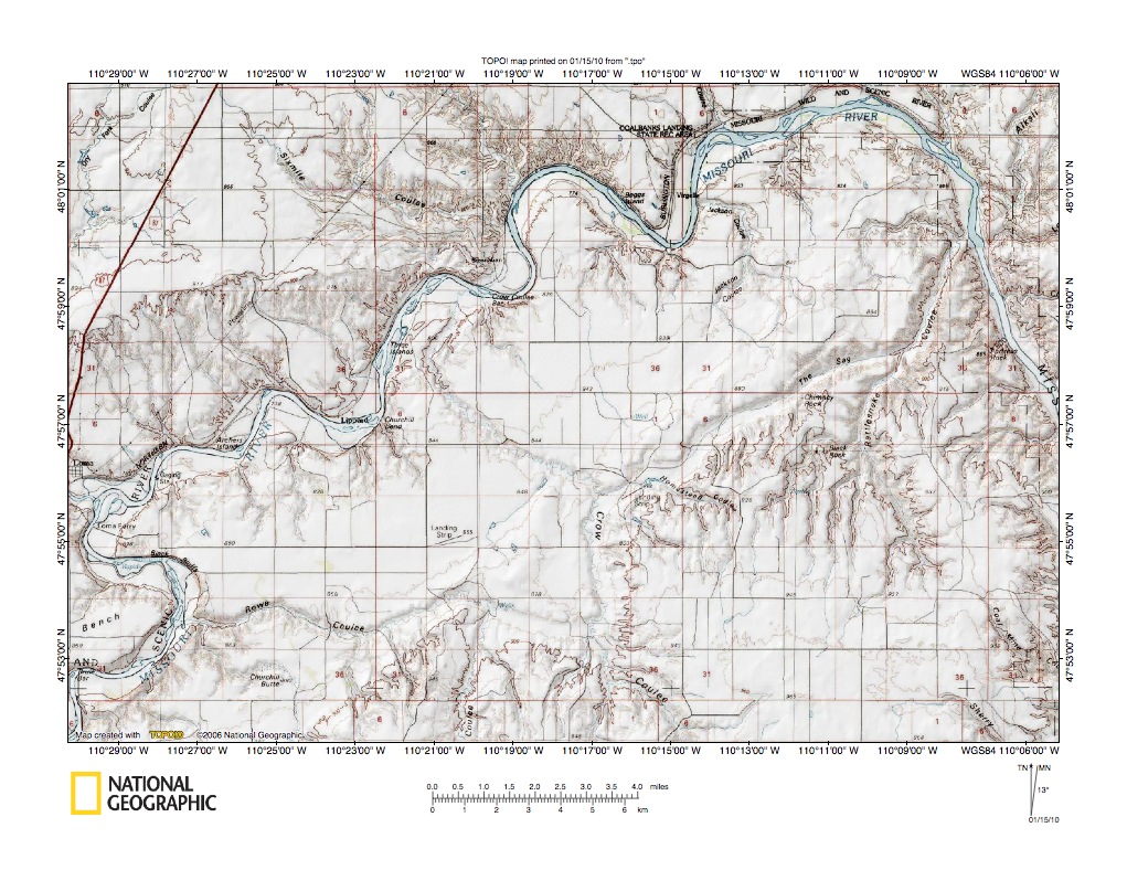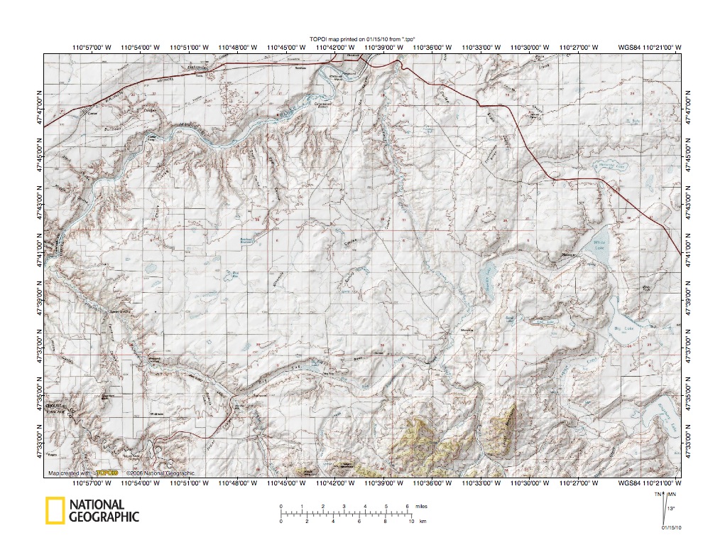 Figure 2: Missouri River-Missouri River drainage divide area detailed location map. United States Geological Survey map digitally presented using National Geographic Society TOPO software.
