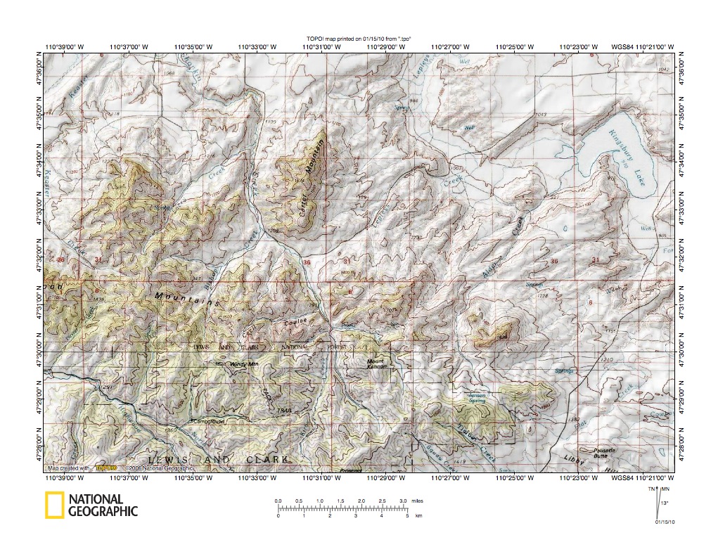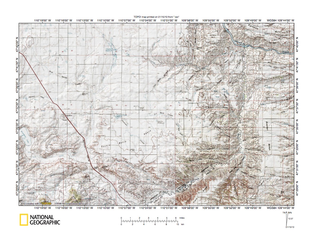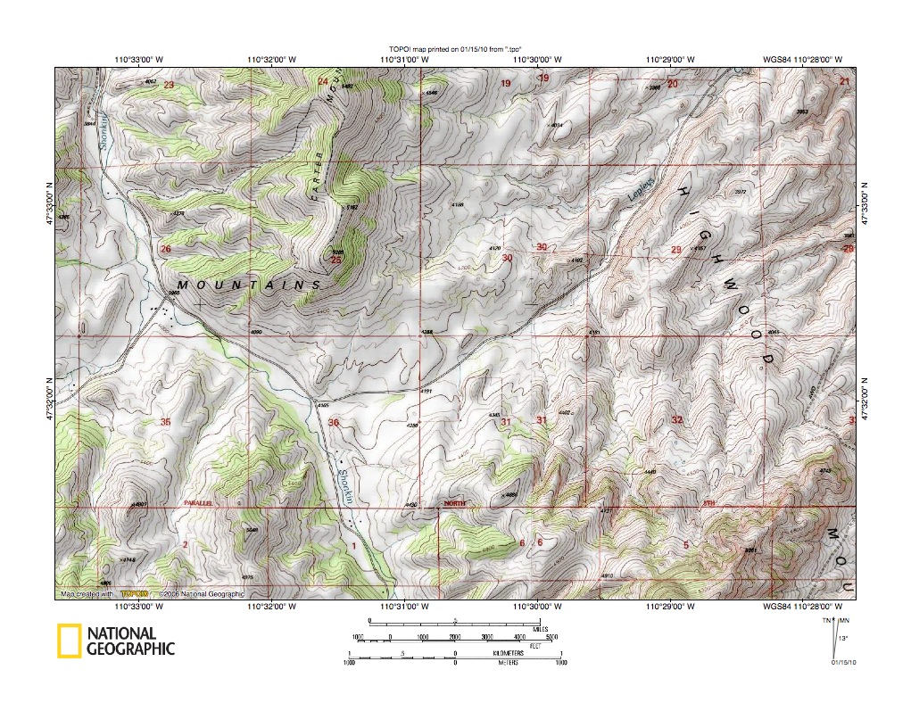Figure 6: Shonkin Creek headwaters area. United States Geological Survey map digitally presented using National Geographic Society TOPO software.