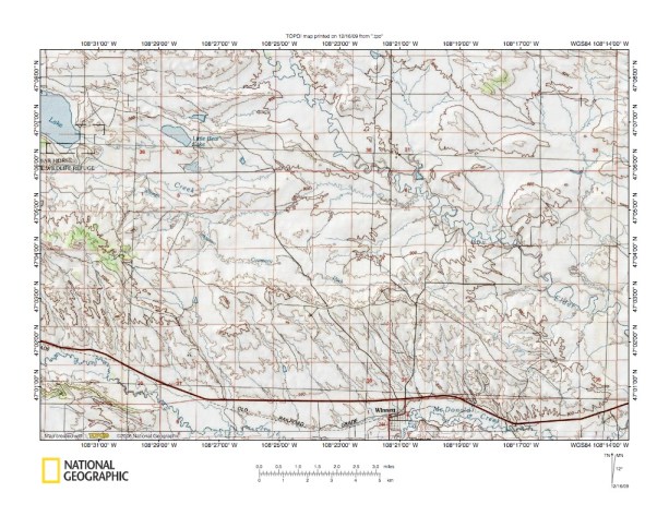 Figure 10: Box Elder Creek-McDonald Creek drainage divide north of Winnett. United States Geological Survey map digitally presented using National Geographic Society TOPO software.
