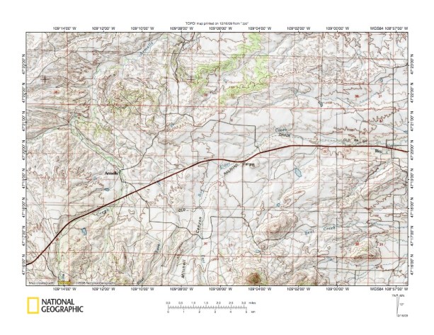 Figure 1: Armells Creek-Box Elder Creek drainage divide area location map (select and click on maps to enlarge). National Geographic Society map digitally presented using National Geographic Society TOPO software.