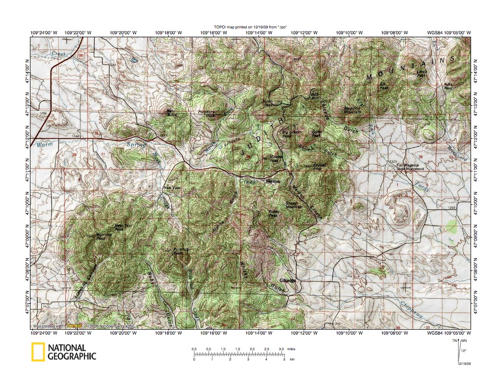 Detailed map of Warm Spring Creek-Musselshell River drainage divide area in the Judith Mountains