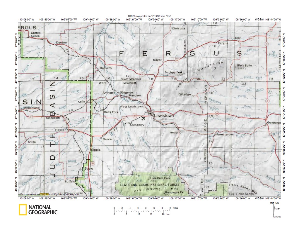 Figure 1: Fergus County Judith River-Musselshell River drainage divide area location map (select and click on maps to enlarge).