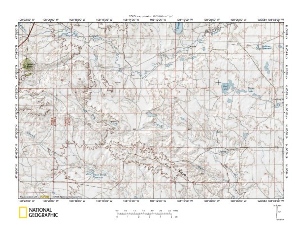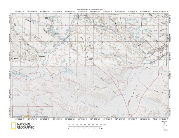 Figure 10: Bull Creek-Missouri River drainage divide area. United States Geological Survey map digitally presented using National Geographic Society TOPO software.