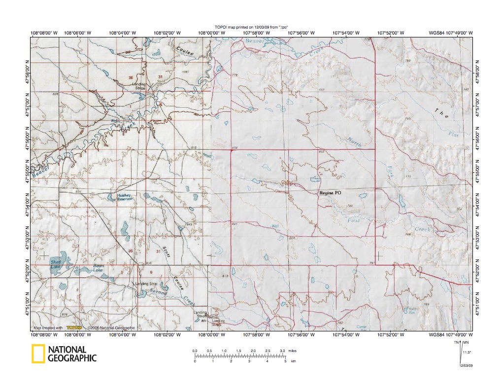 Figure 2: Beaver Creek-Missouri River drainage divide area detailed location map. United States Geological Survey map digitally presented using National Geographic Society TOPO software.