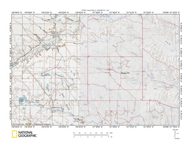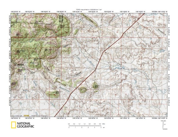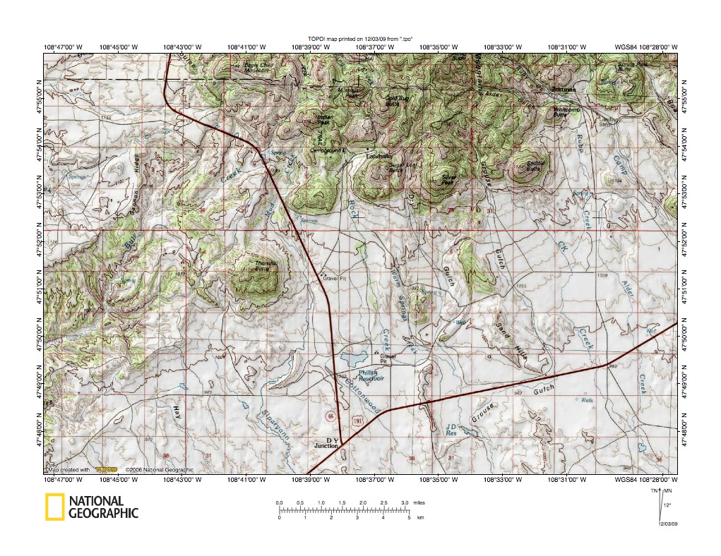 Figure 5: Beaver Creek-Dry Fork Creek drainage divide area. United States Geological Survey map digitally presented using National Geographic Society TOPO software.