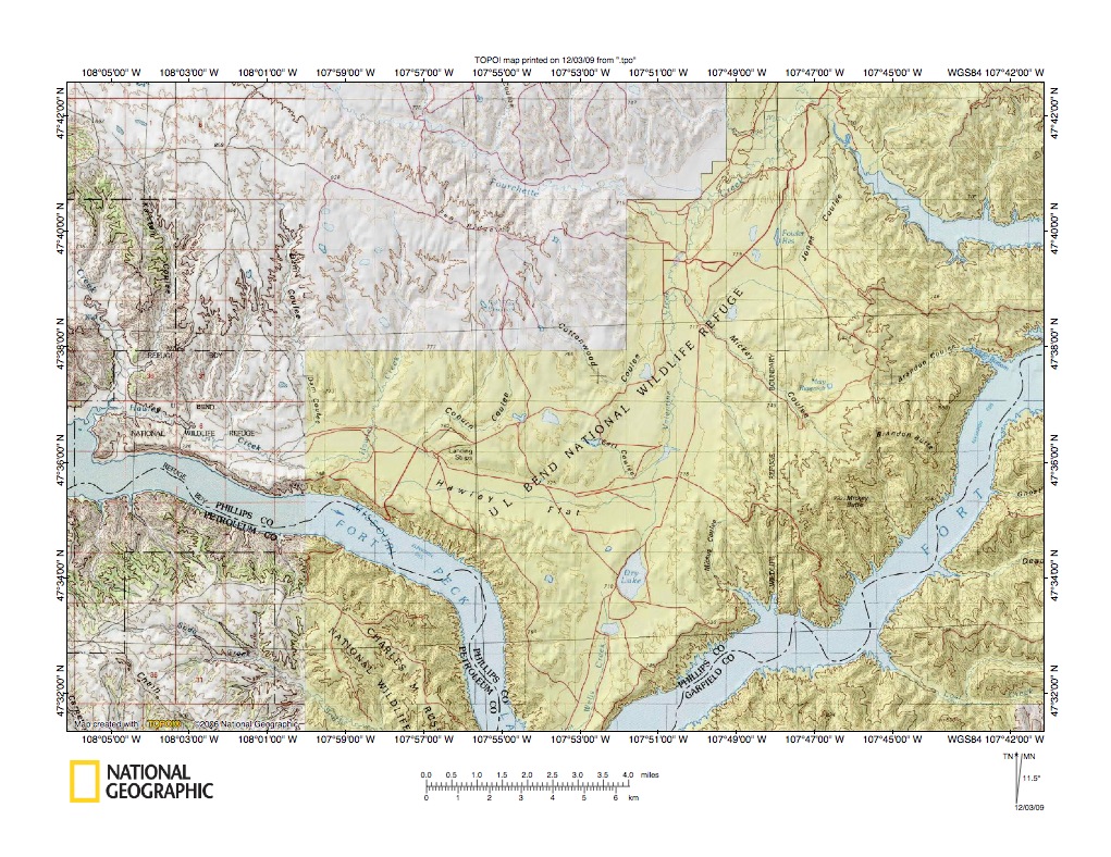 Figure 6: Drainage divides in UL Bend area. United States Geological Survey map digitally presented using National Geographic Society TOPO software.