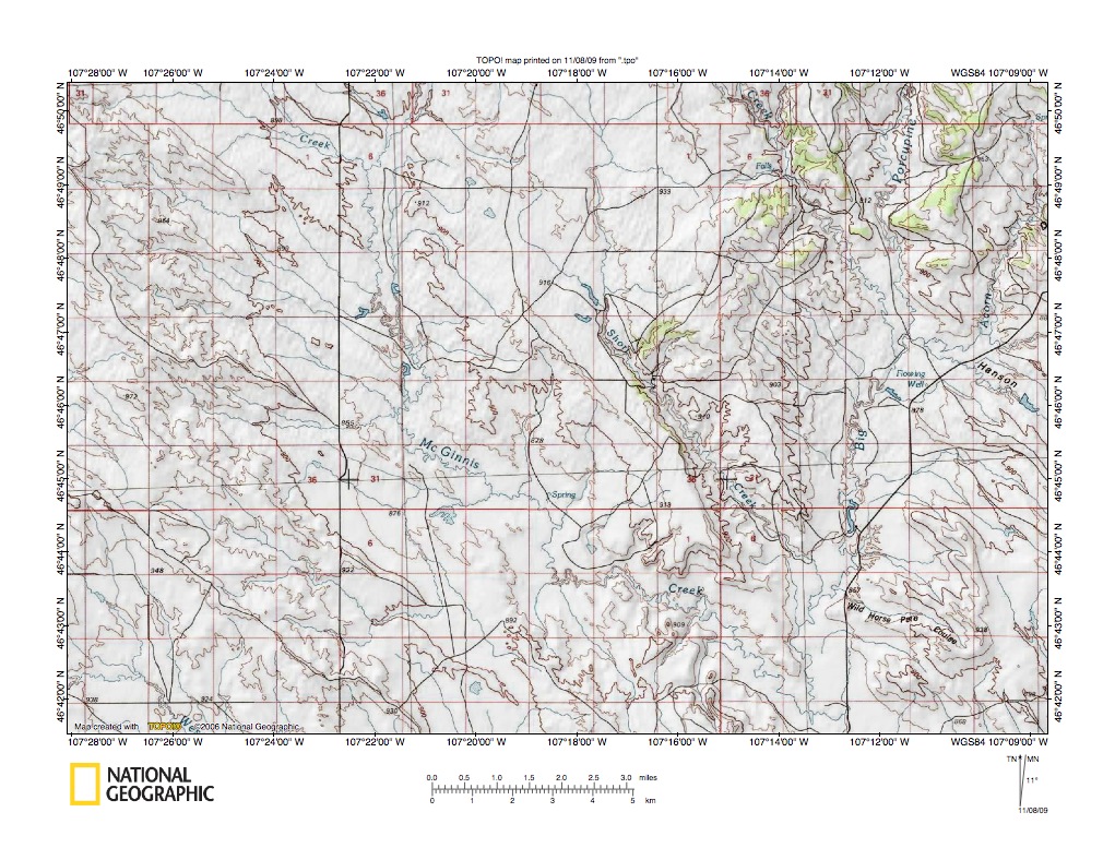 Figure 8: Musselshell River and Rattlesnake Creek valleys. United States Geological Survey map digitally presented using National Geographic Society TOPO software.