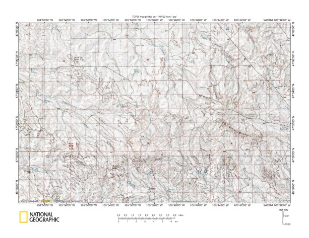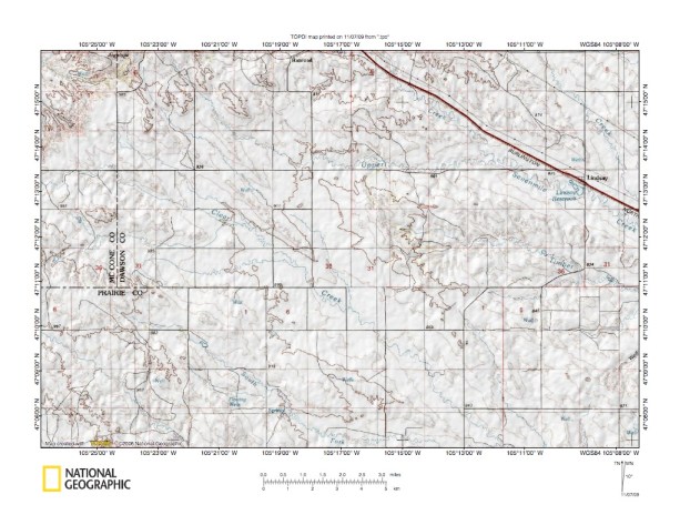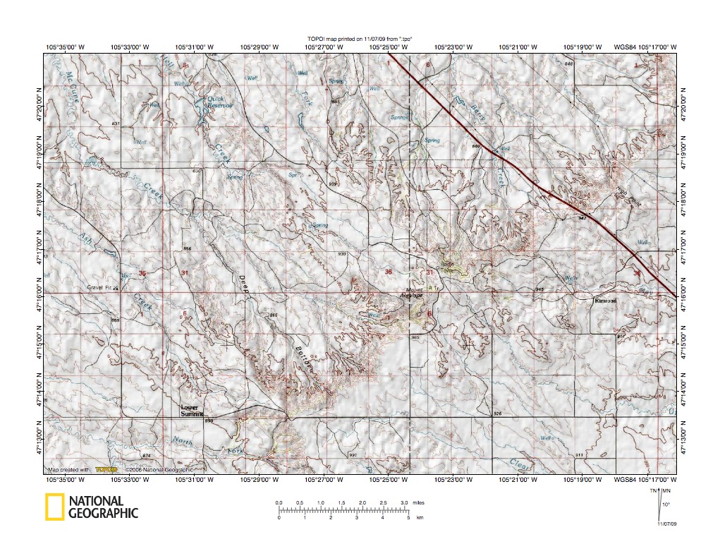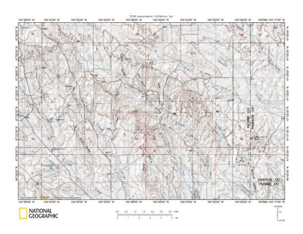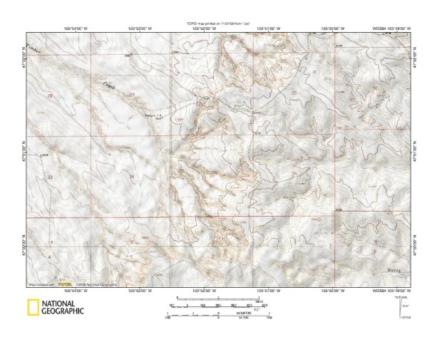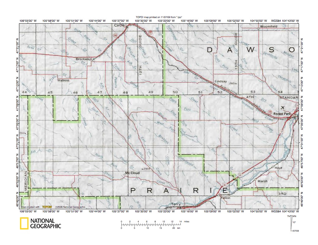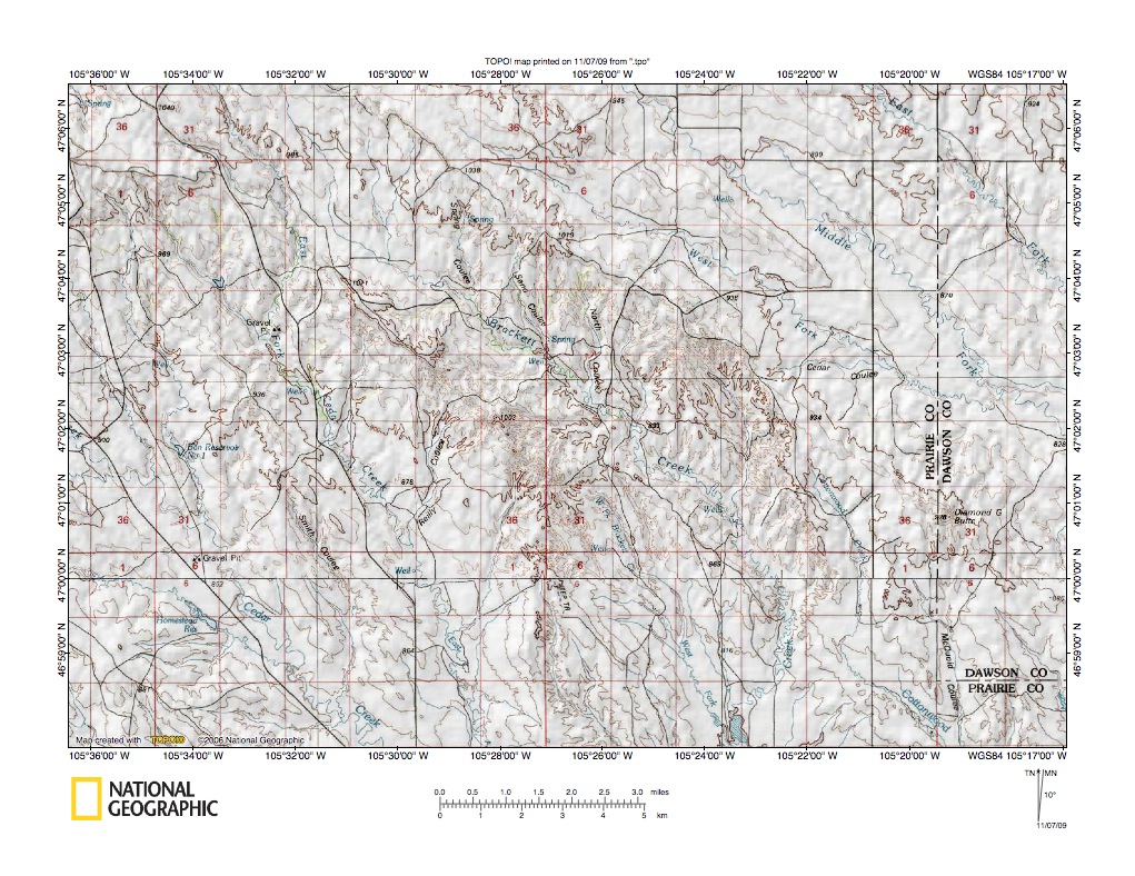 Figure 5: Redwater River valley northwest slope south of Circle. United States Geological Survey map digitally presented using National Geographic Society TOPO software.