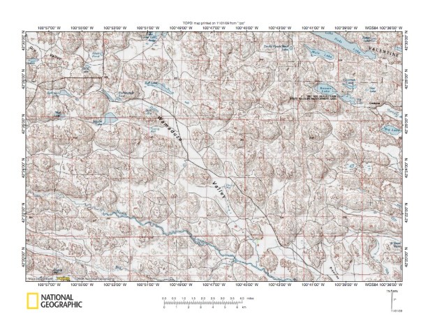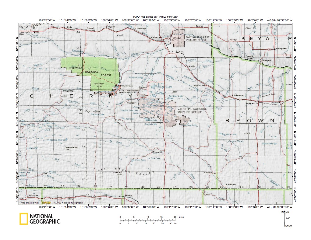 Figure 10: Calamus River headwaters area. United States Geological Survey map digitally presented using National Geographic Society TOPO software.