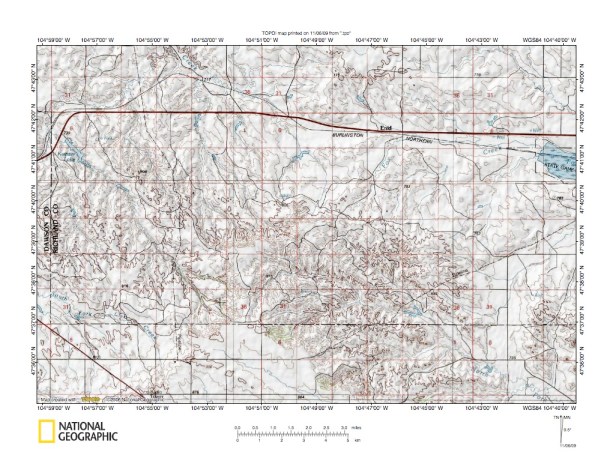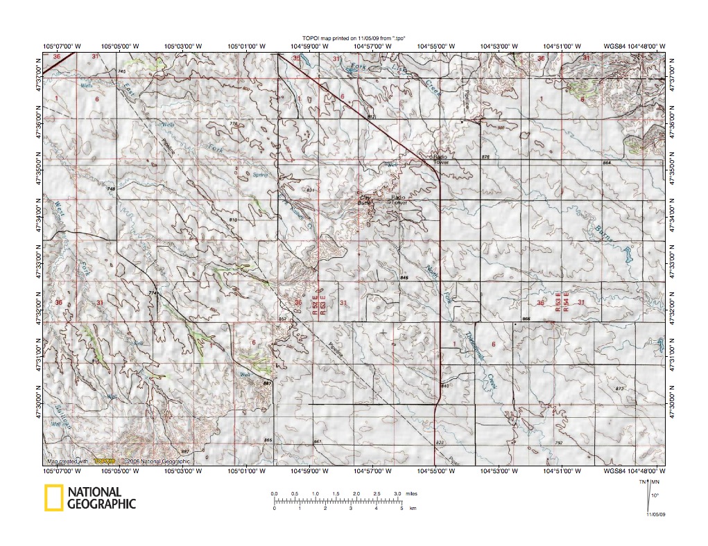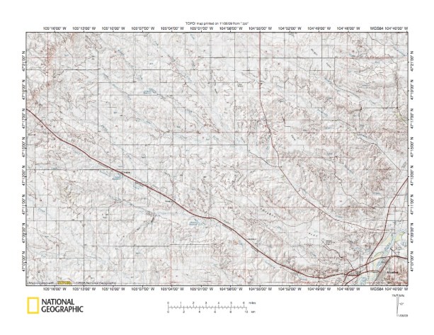 Figure 1: Redwater River-Yellowstone River drainage divide area location map (select and click on maps to enlarge). National Geographic Society map digitally presented using National Geographic Society TOPO software.
