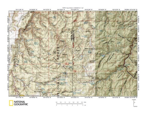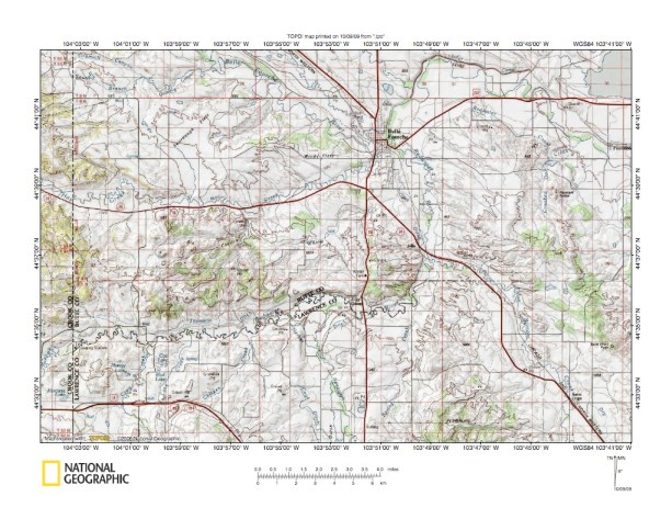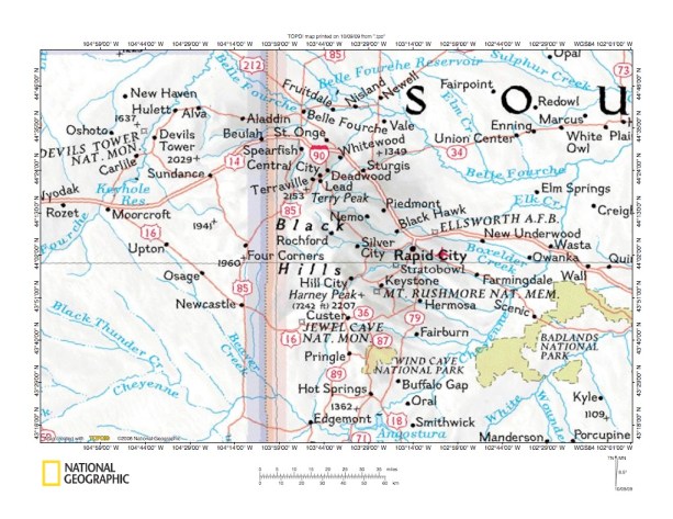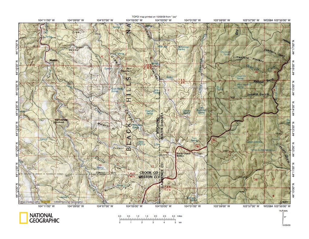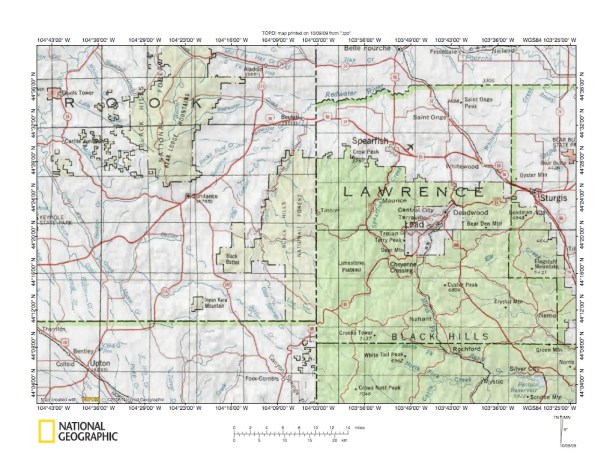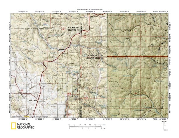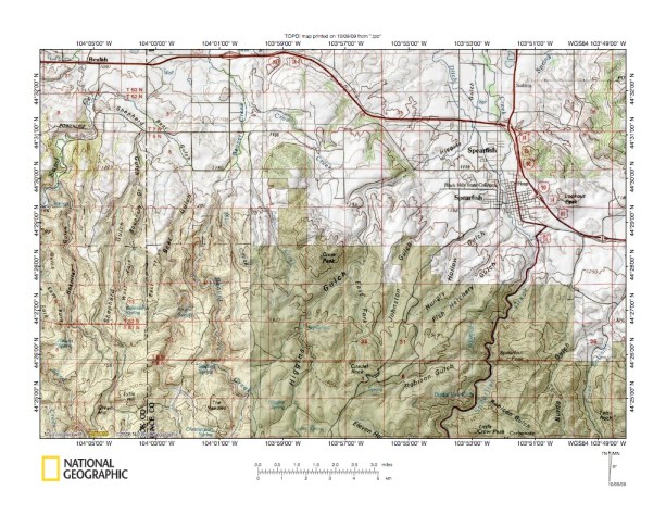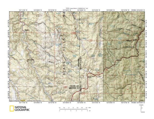 Figure 1: Redwater River-Spearfish Creek drainage divide area general location map (select and click on maps to enlarge). National Geographic Society map digitally presented using National Geographic Society TOPO software.