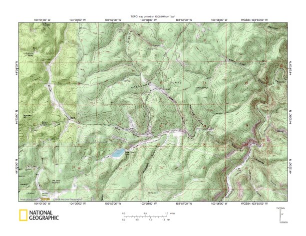 Figure 10: Detailed map of through valley linking Cold Spring Creek and Stockade Beaver Creek. United States Geological Survey map digitally presented using National Geographic Society TOPO software.