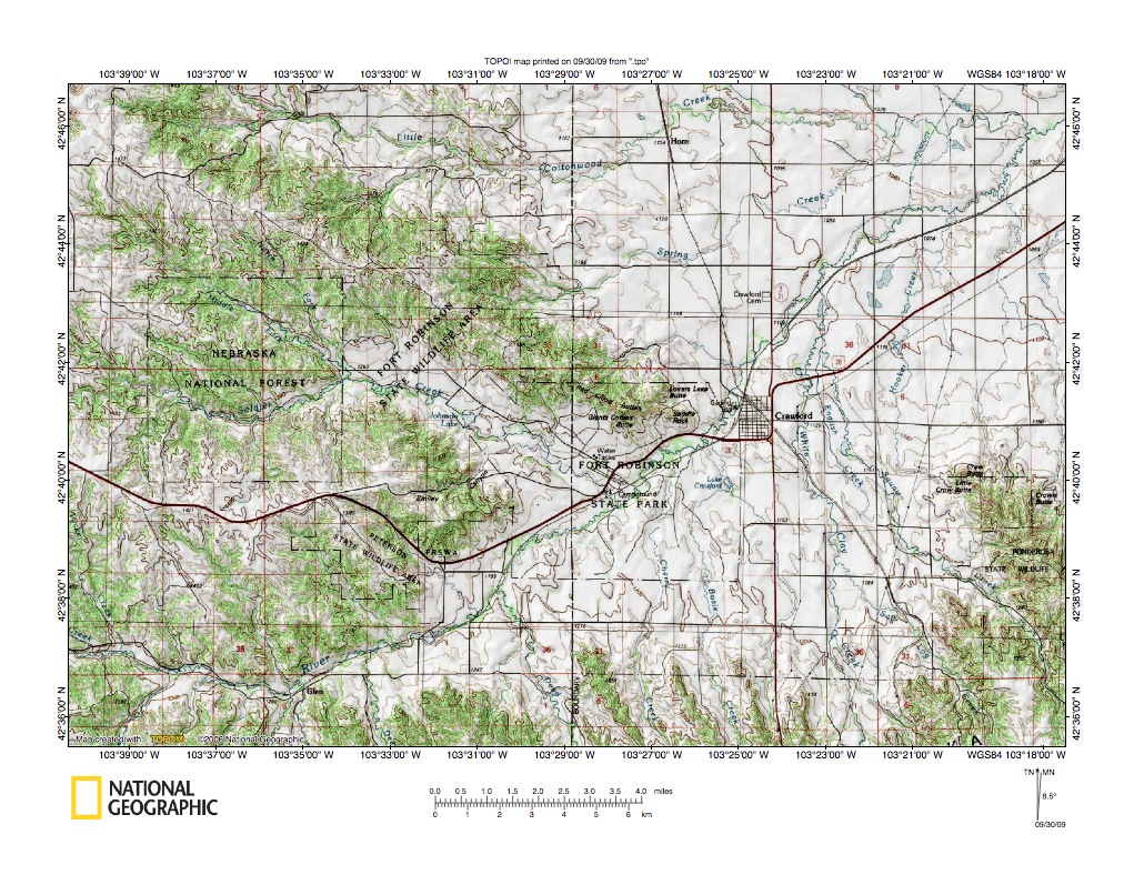 Figure 5: White River valley near Crawford, Nebraska. United States Geological Survey map digitally presented using National Geographic Society TOPO software.