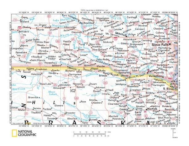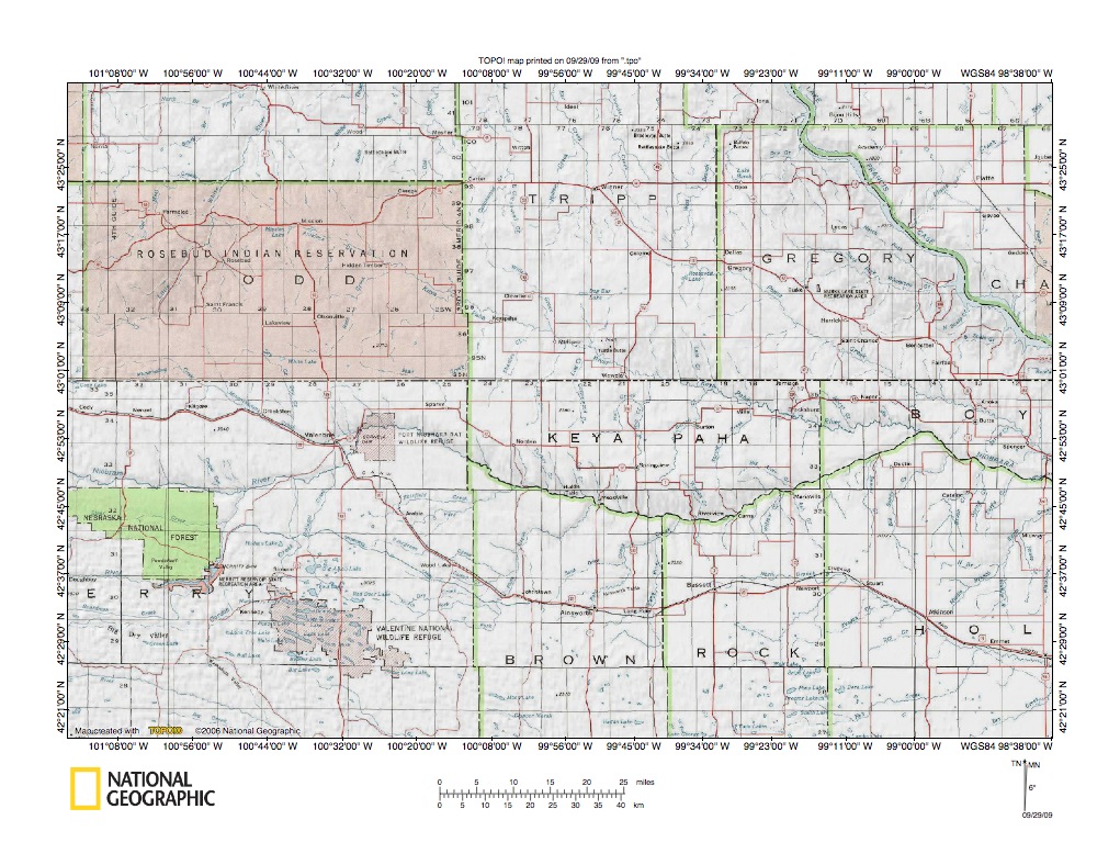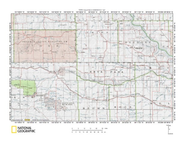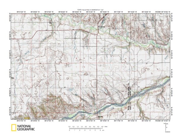 Figure 1: Keya Paha River-Niobrara River drainage divide general location map. National Geographic Society map digitally presented using National Geographic Society TOPO software.