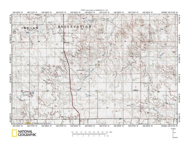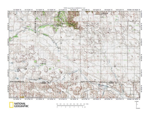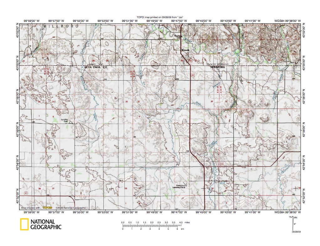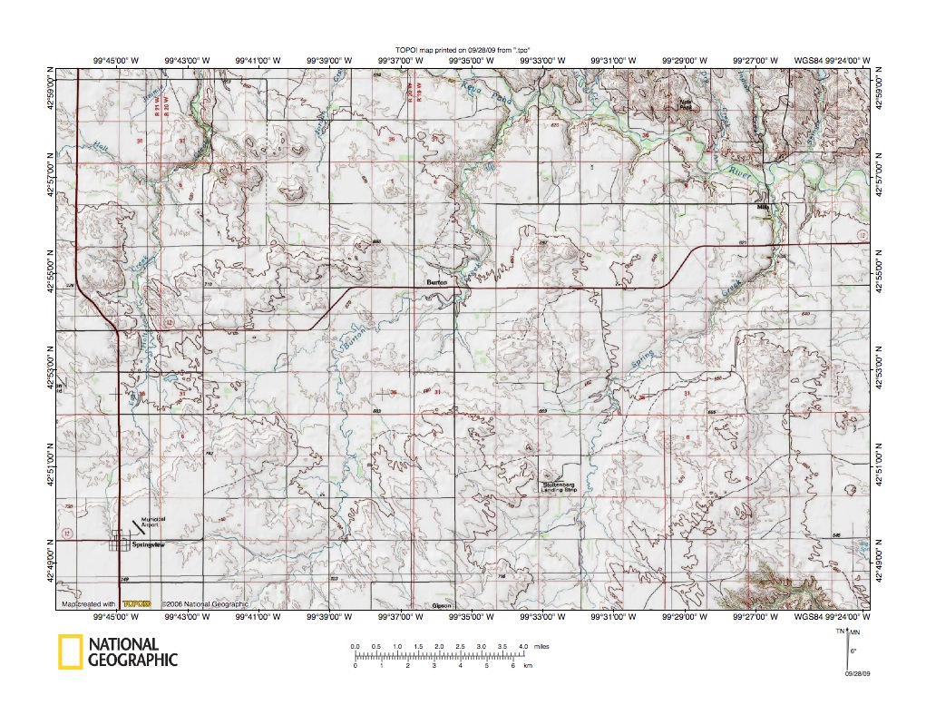 Figure 9: Burton Creek drainage basin area near Springview, Nebraska. United States Geological Survey map digitally presented using National Geographic Society TOPO software.