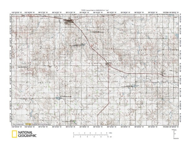 Figure 5: Ponca Creek-Keya Paha River drainage divide area southwest of Burke, South Dakota area. United States Geological Survey map digitally presented using National Geographic Society TOPO software.