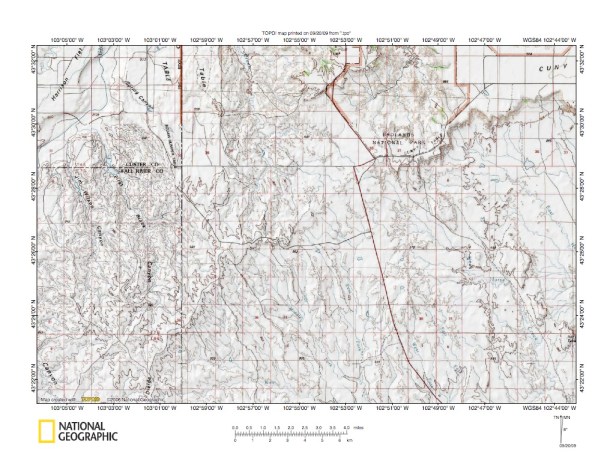 Figure 8: Cheyenne River-White River drainage divide southwest of Cuny Table area. United States Geological Survey map digitally presented using National Geographic Society TOPO software.