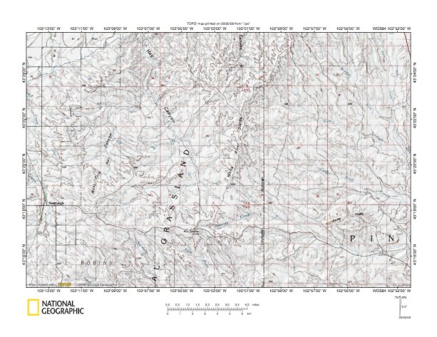 Figure 2: Cheyenne River-White River drainage divide area detailed location map. United States Geological Survey map digitally presented using National Geographic Society TOPO software.