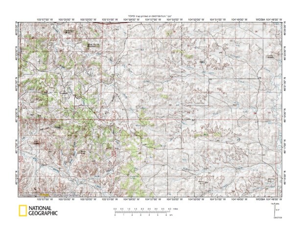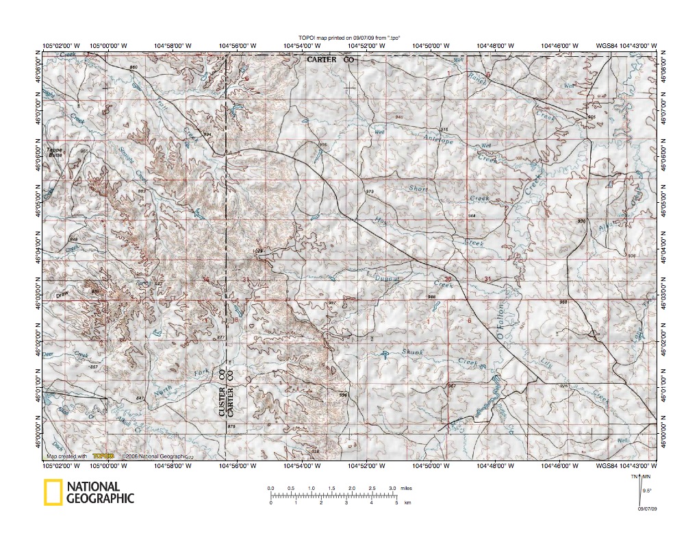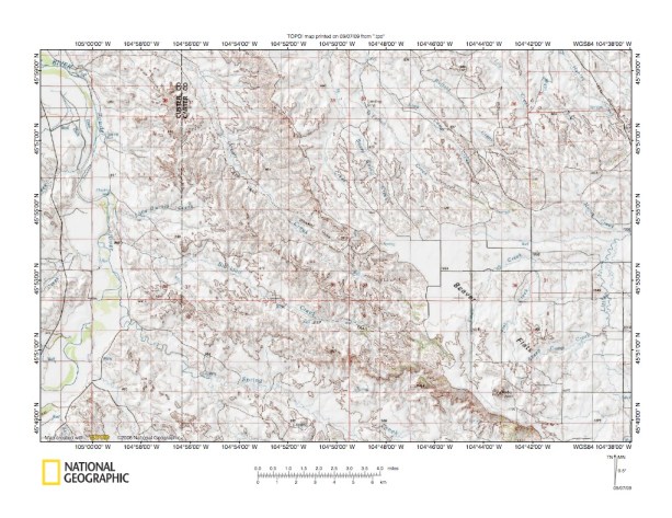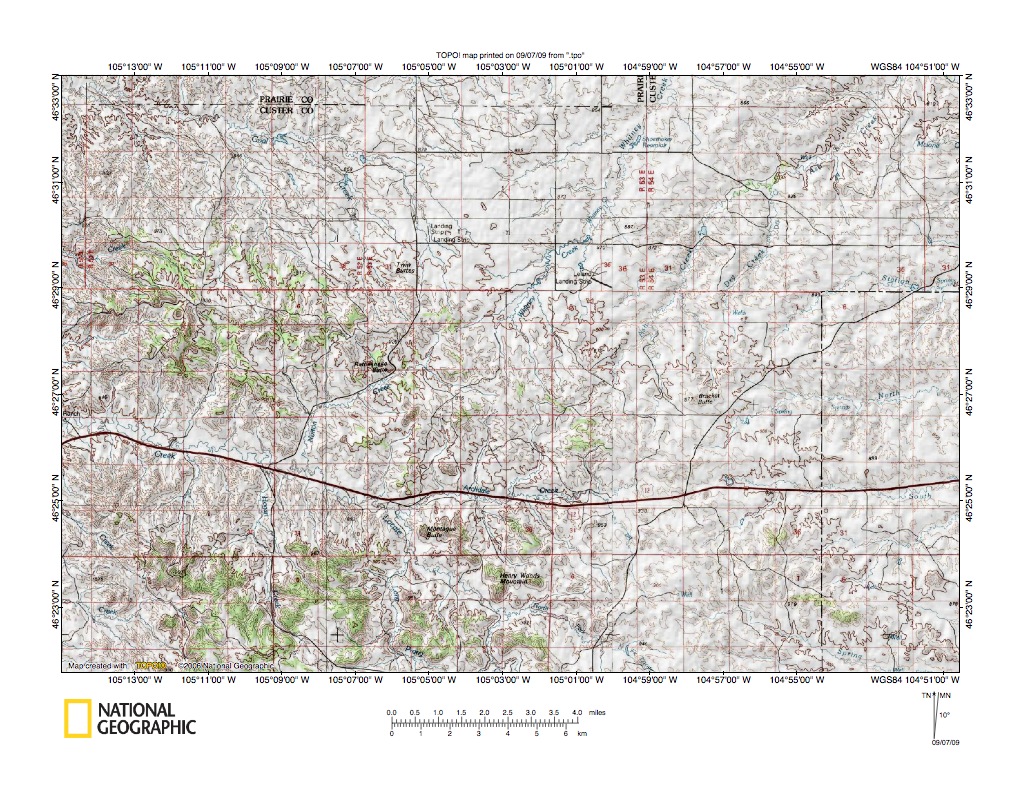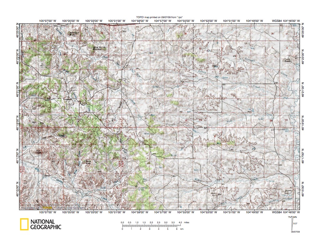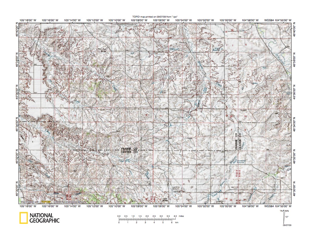 Figure 9: Alkali Creek-O’Fallon Creek drainage divide area. United States Geological Survey map digitally presented using National Geographic Society TOPO software.