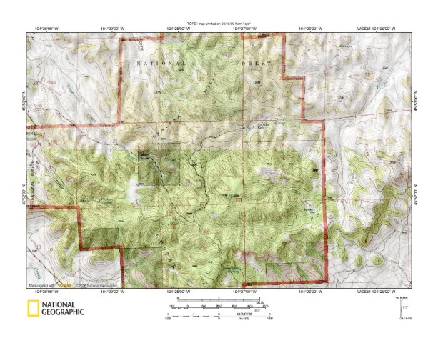 Figure 11: Little Beaver Creek-Boxelder Creek-Powder River drainage divide area. United States Geological Survey map digitally presented using National Geographic Society TOPO software.
