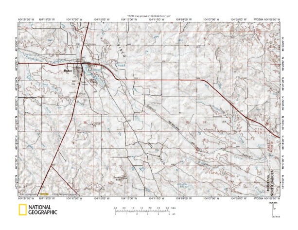 Figure 3: Yellowstone River-Little Beaver Creek drainage divide at Baker, Montana. United States Geological Survey map digitally presented using National Geographic Society TOPO software.