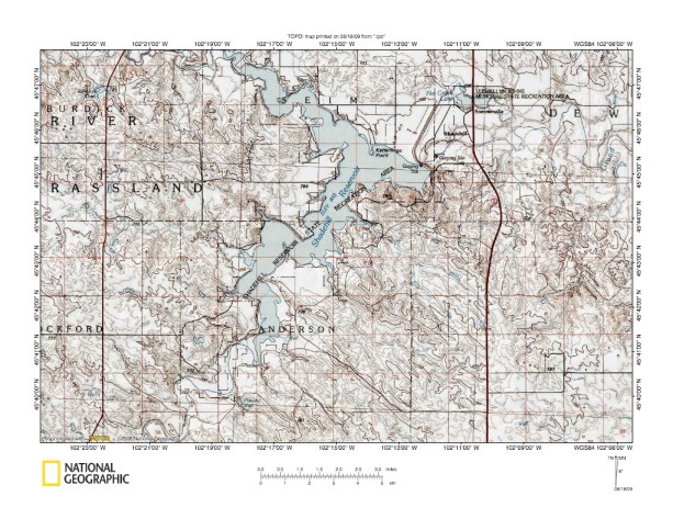 Figure 10: North Fork-South Fork Grand River confluence area at Shadehill Reservoir. United States Geological Survey map digitally presented using National Geographic Society TOPO software.