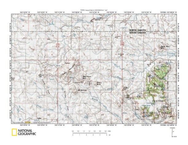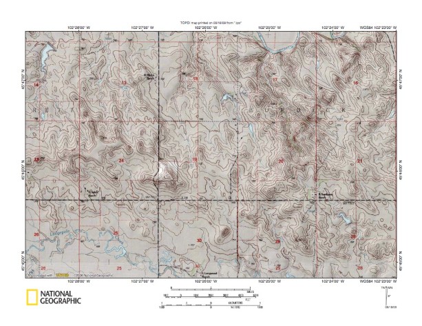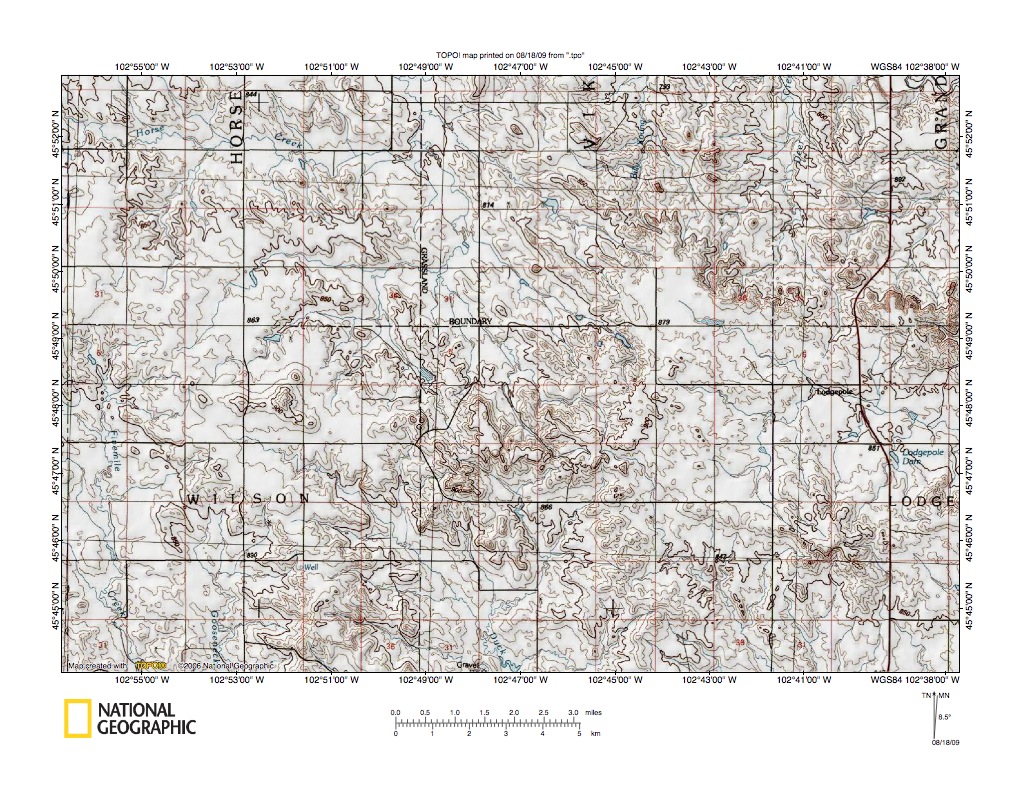 Figure 5: Lodge Pole Buttes area. United States Geological Survey map digitally presented using National Geographic Society TOPO software.