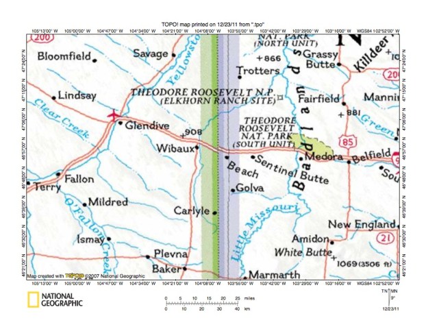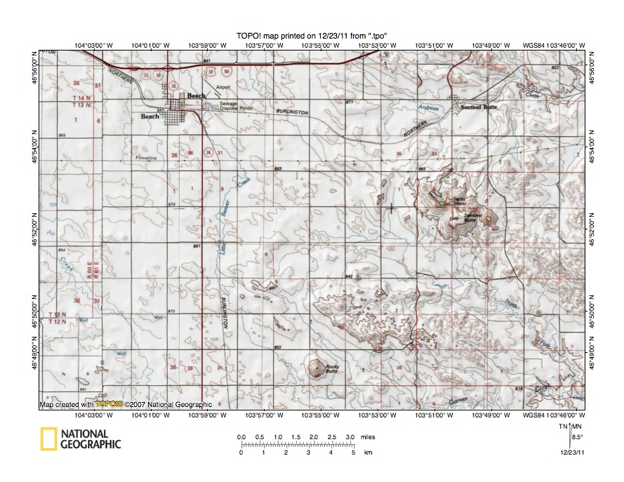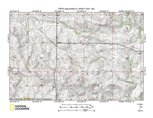 Figure 6: Beaver Creek-Little Missouri River drainage divide near Golva. United States Geological Survey map digitally presented using National Geographic Society TOPO software.